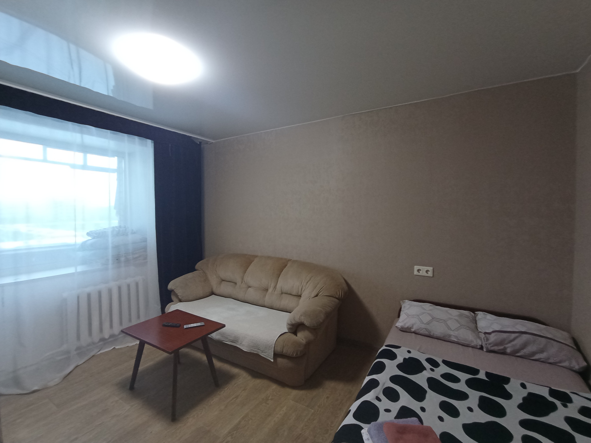 Квартира в хорошем состоянии: стеклопакеты, ламинат на полах, везде натяжные потолки.