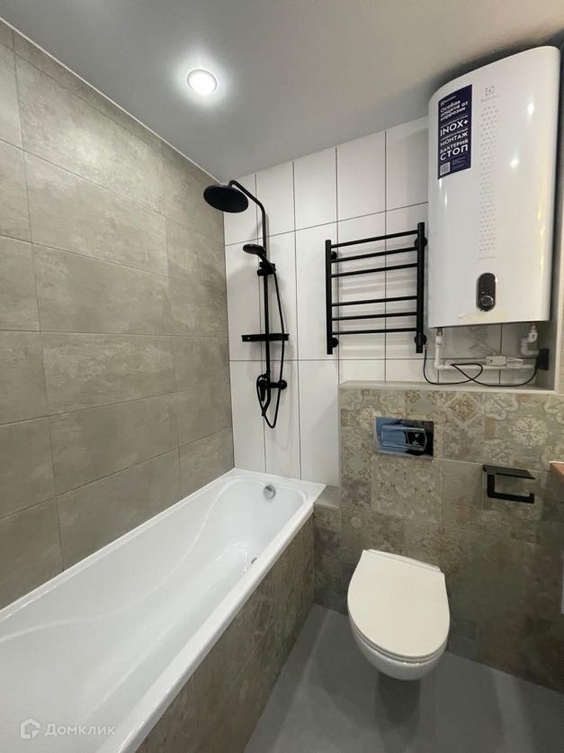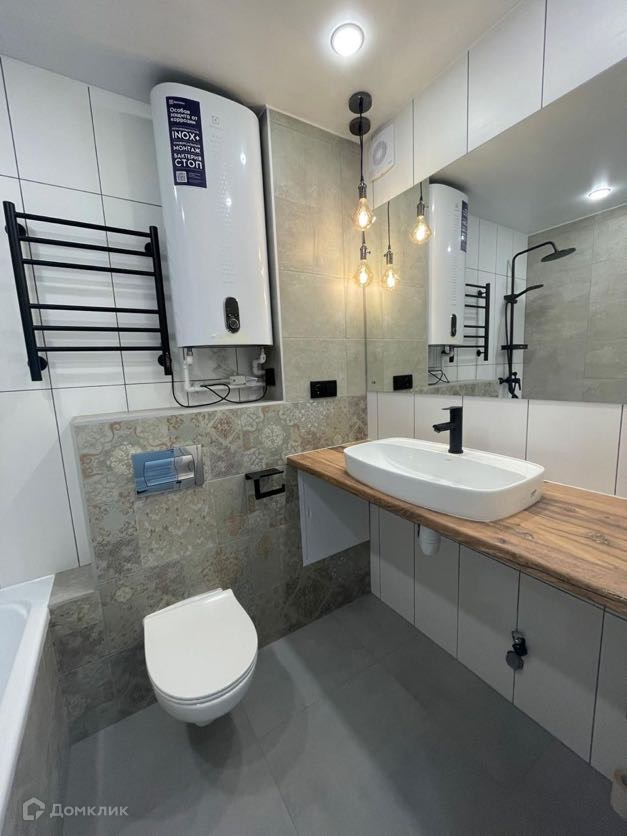 Сан узел совмещенный, облицован кафельной плиткой, установлена инсталляция, электрический полотенцесушитель, водонагреватель, сделаны выводы для подключения стиральной машины