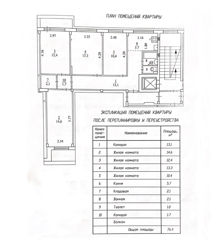 Общая площадь 76.4 м2