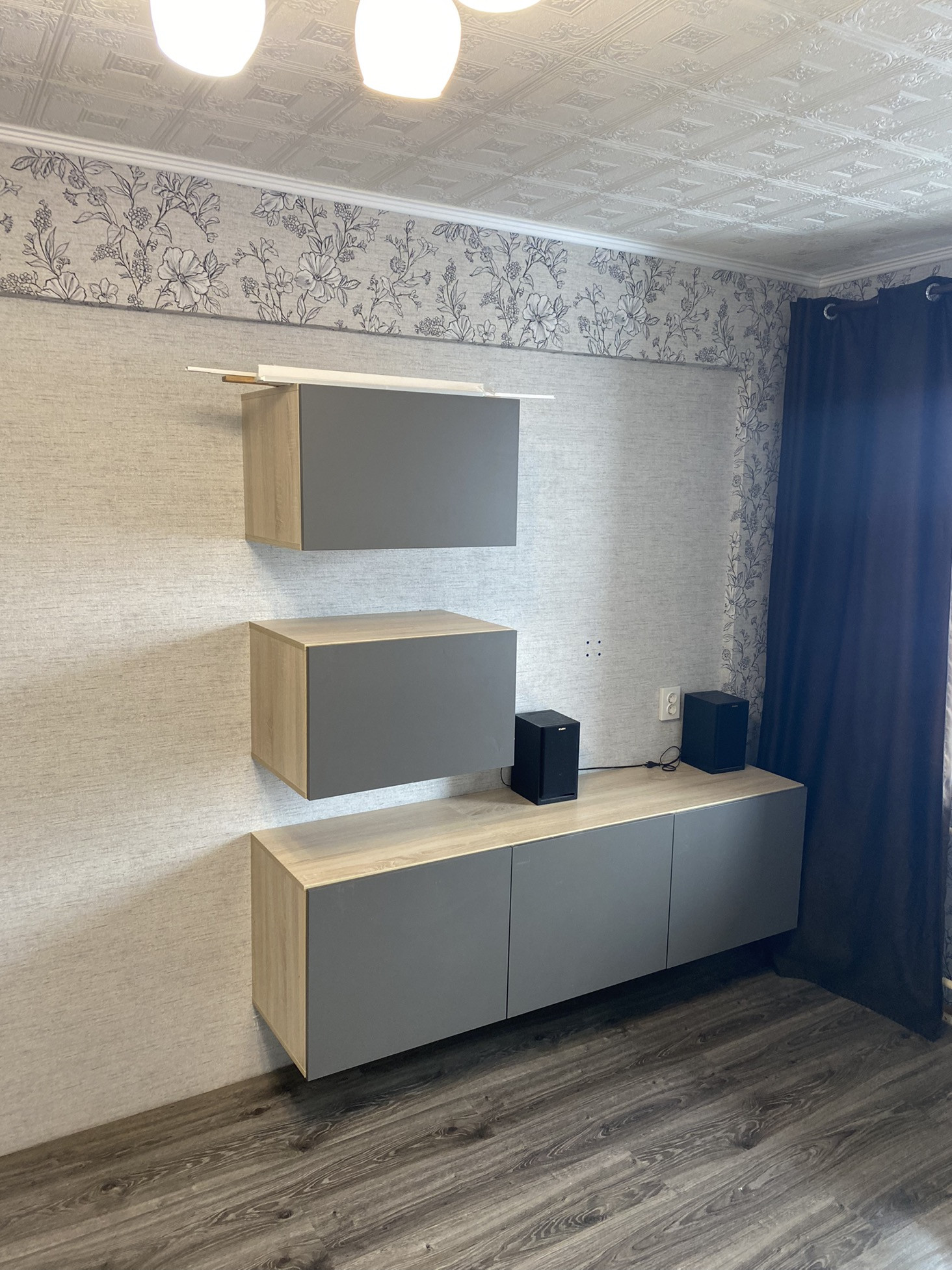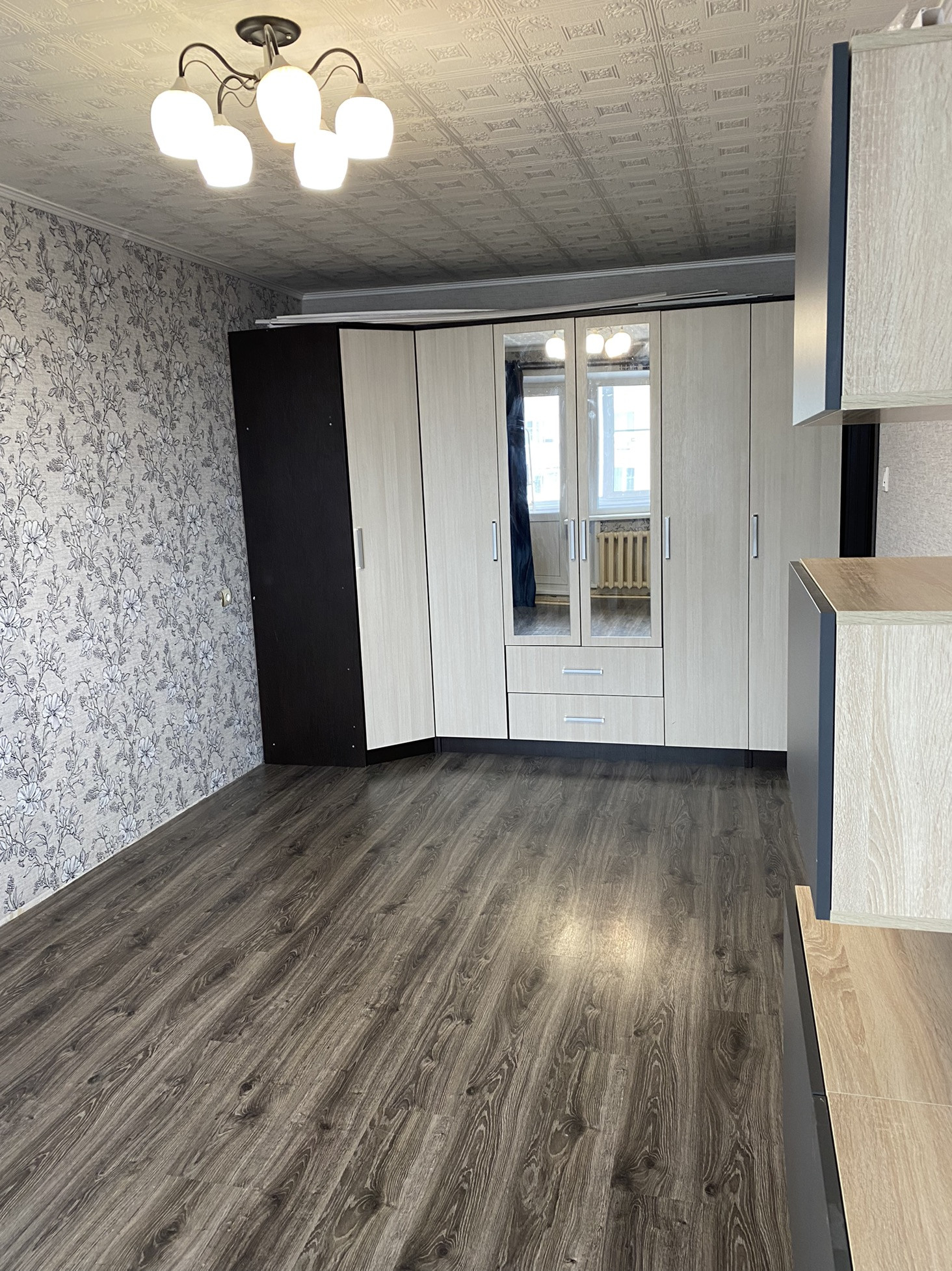 Встроенная мебель и техника остаётся новым владельцам в подарок (навесная тумба под телевизор, шкафы в ширину всей комнаты, угловой кухонный гарнитур с встроенной техникой )