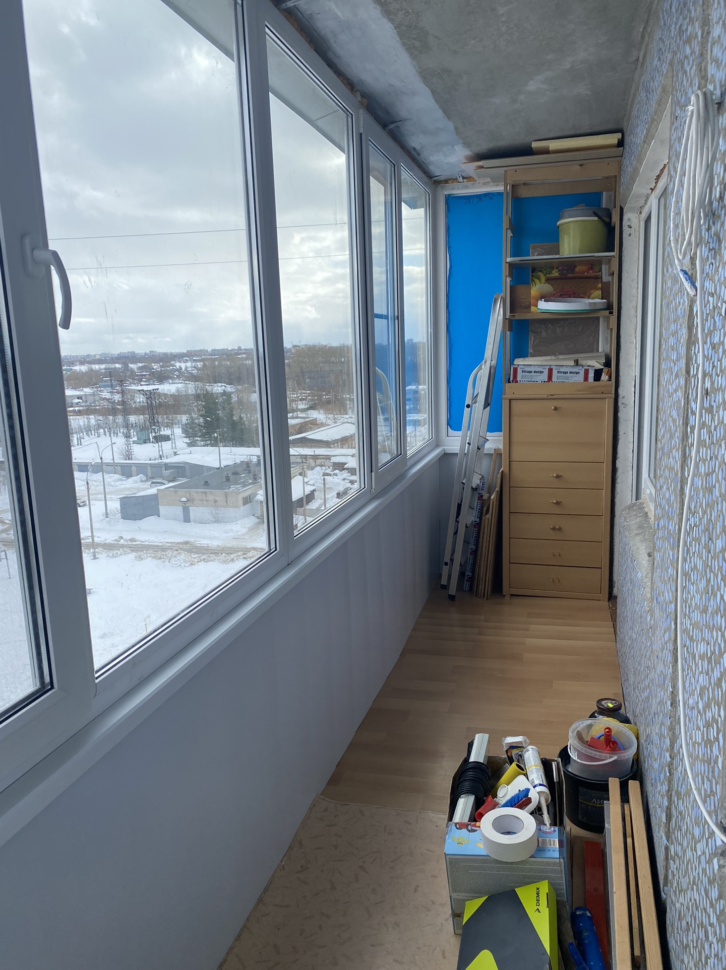 Балкон очень просторный ,на два окна
