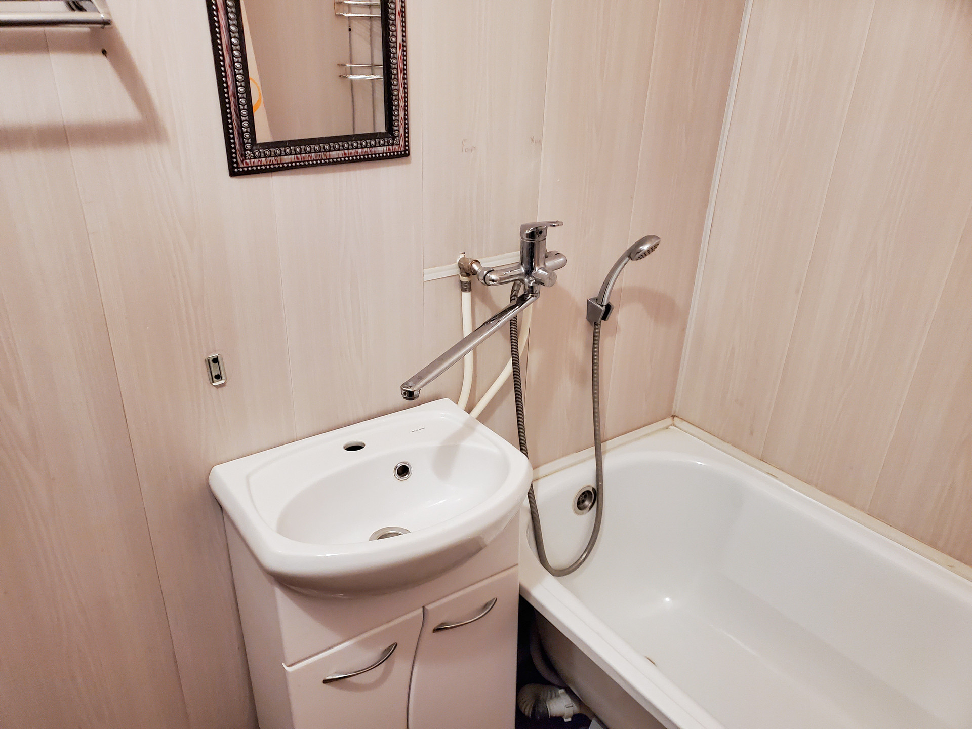+ сан. узел раздельный, стены в ванной комнате обшиты пластиковыми панелями, новая разводка сантехники – металлопластиковые трубы на пресс-фитингах, заменены стояки канализации,