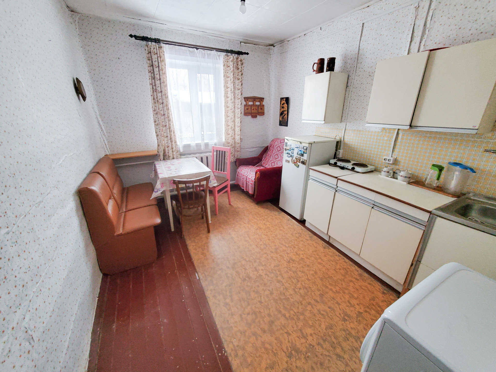 Тёплая, уютная квартира в деревянном доме со всеми удобствами, кроме горячей воды (установлен водонагреватель):