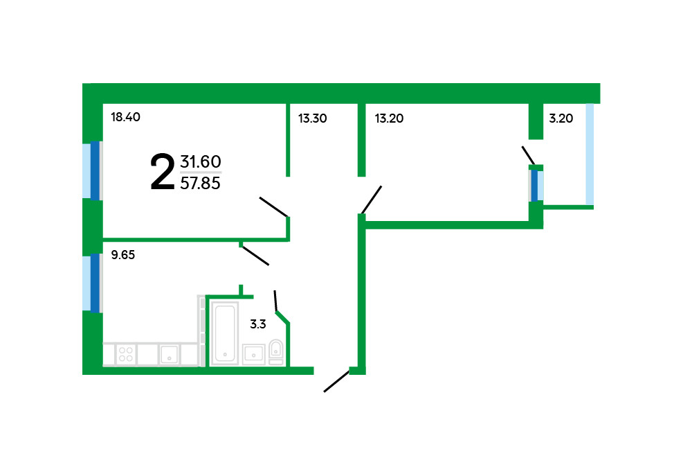 Общая площадь 57.85 м2