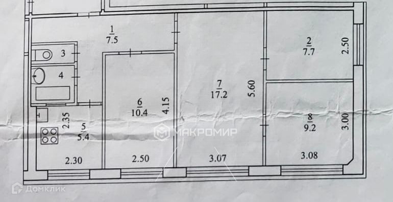 Площадь кухни 5.4 м2