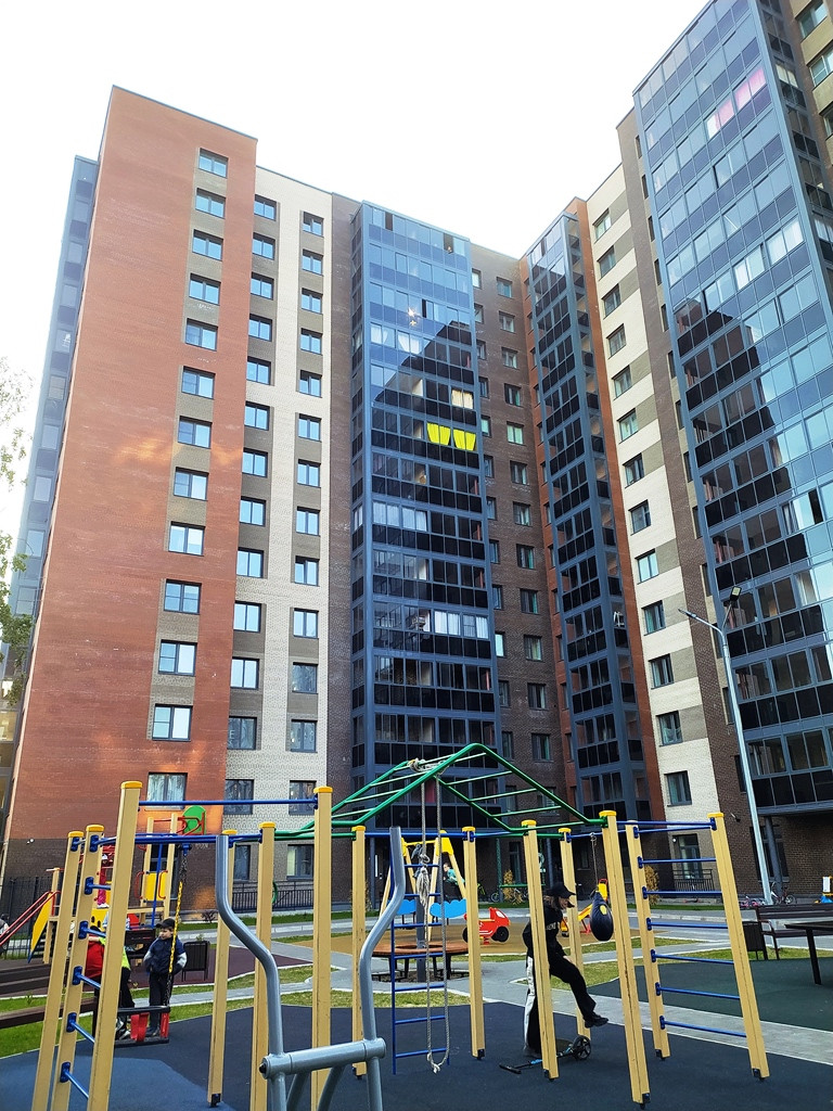 • Благоустроенный закрытый двор с дренажной системой «Двор без луж», с зонами отдыха, детскими площадками с антитравматическим покрытием, уличными тренажерами и турниками, велопарковками