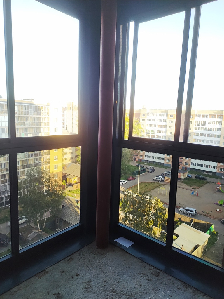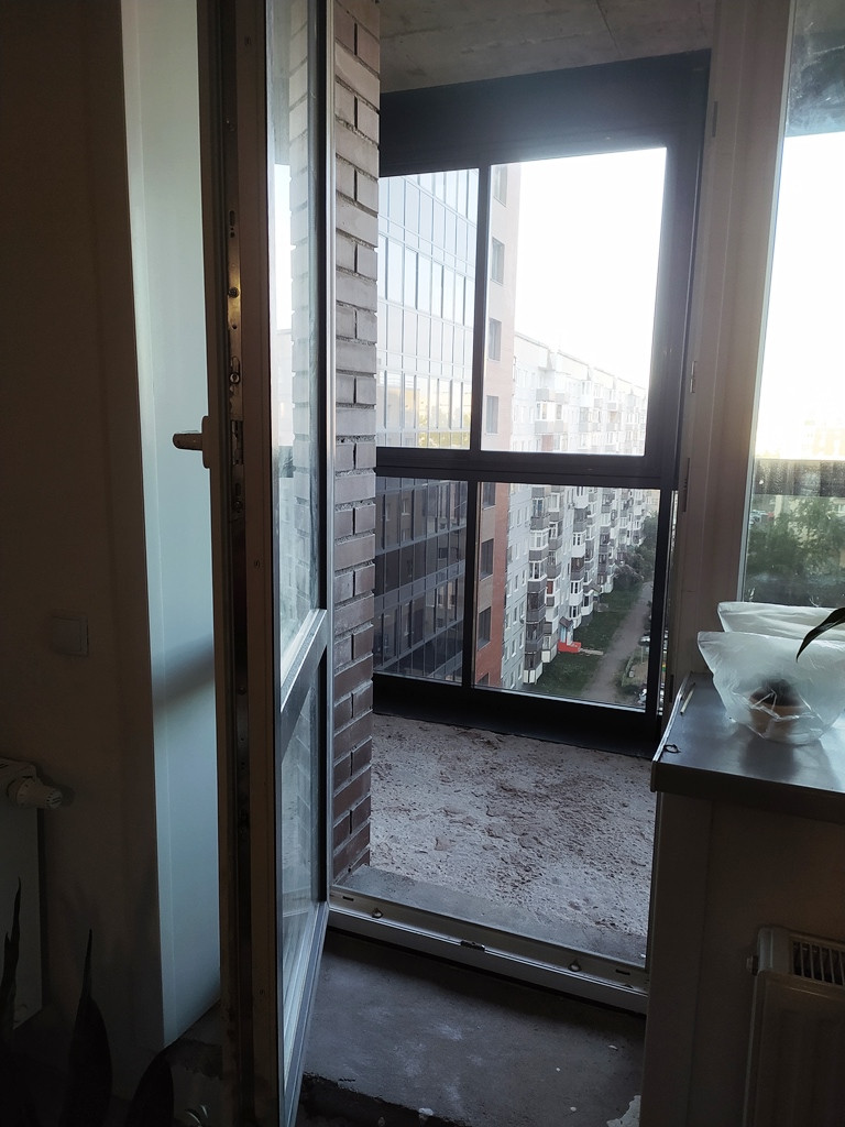• Широкий балкон с панорамным остеклением и освещением