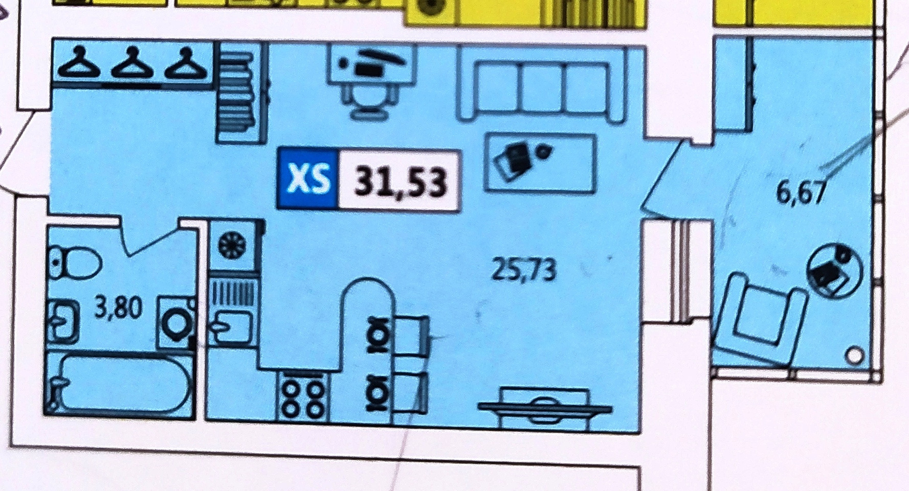 Окна квартиры ориентированы на восток. Вид из окна – на город, внутренний двор с детской площадкой, тренажерами и цветниками, газонами и цветущими кустарниками. Квартира очень теплая и светлая. Площадь квартиры 31,53 кв.м. Балкон 6,67 кв.м. с панорамным остеклением и освещением. Санузел совмещен 3, 8 кв.м. Двухтарифный электросчетчик и теплосчетчик находятся на этаже. Распределительный щиток с электроавтоматами расположен в квартире.
