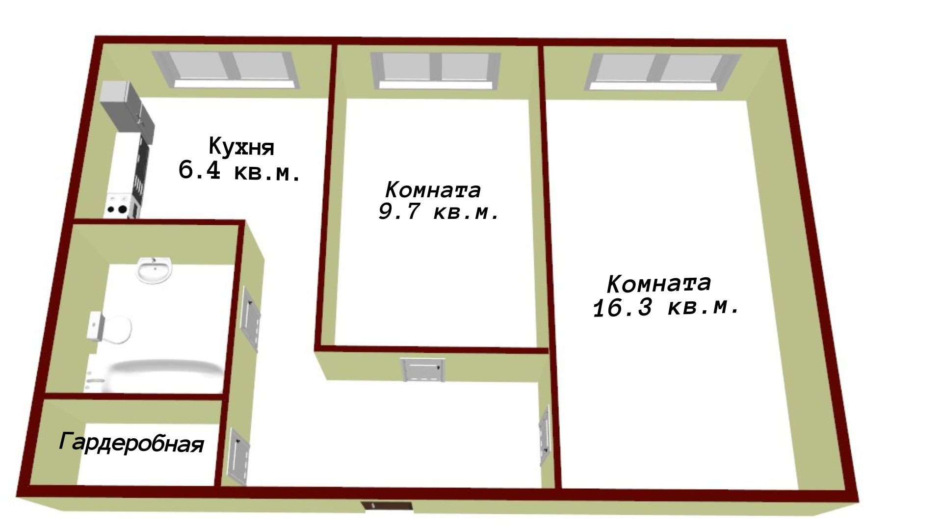 Площадь кухни 6.4 м2