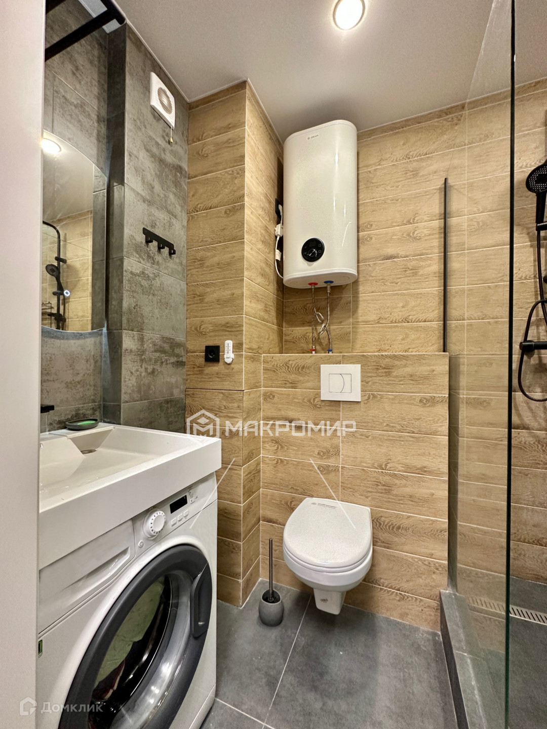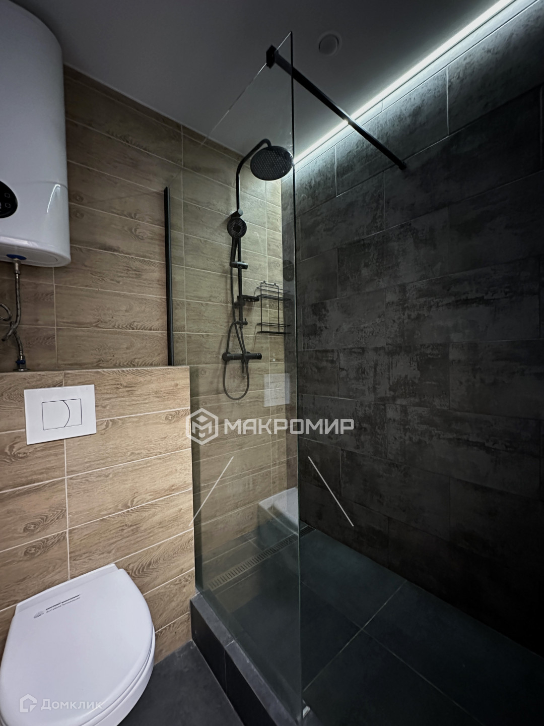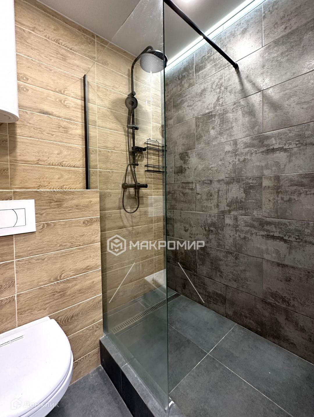 - Санузел в кафеле, установлен теплый пол, несколько схем освещения