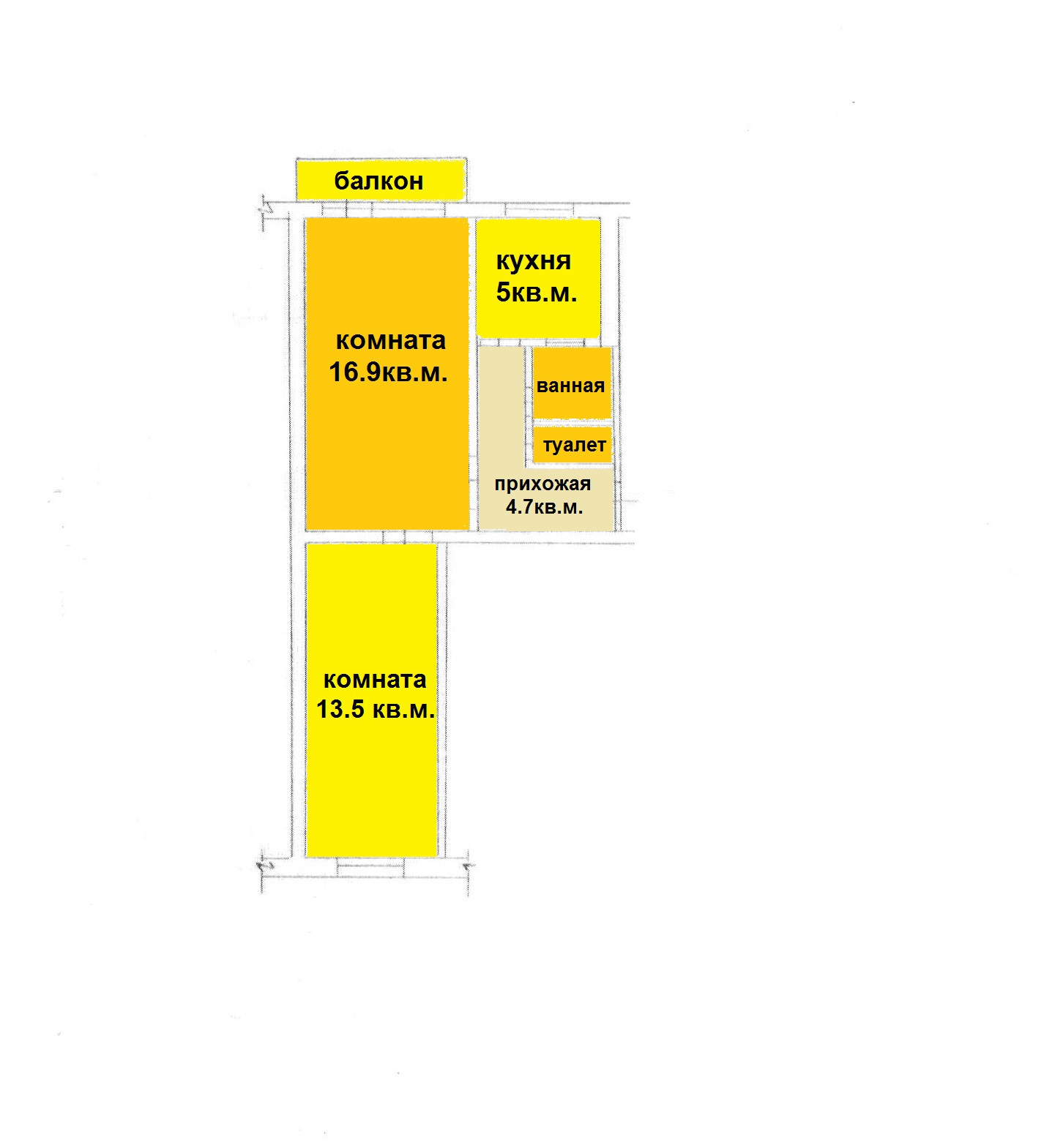 Площадь кухни 4.9 м2