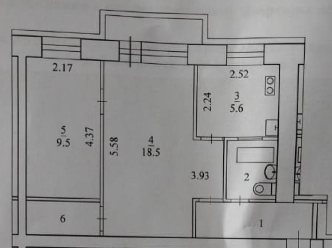 Общая площадь 44.2 м2