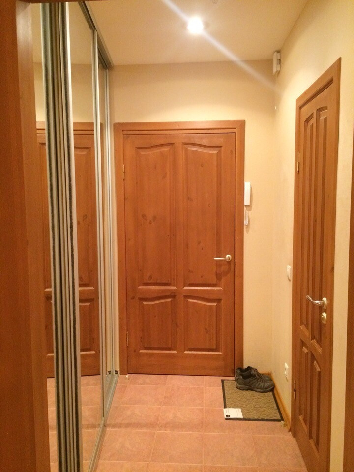 Зона кухни отделена перегородкой. В ванной комнате новая душевая кабинка. Вид из окна лоджии на Гайдара/Обводный.