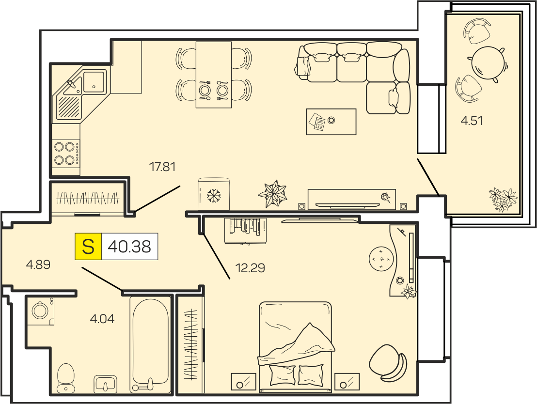 Общая площадь 40.4 м2