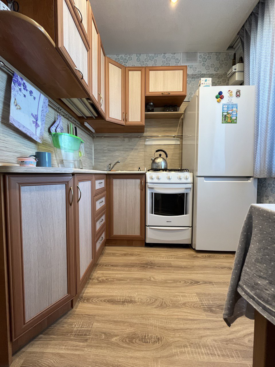 Квартира в хорошем состоянии: установлены стеклопакеты, ламинат, кафельная плитка в ванной. Лоджия застеклена.