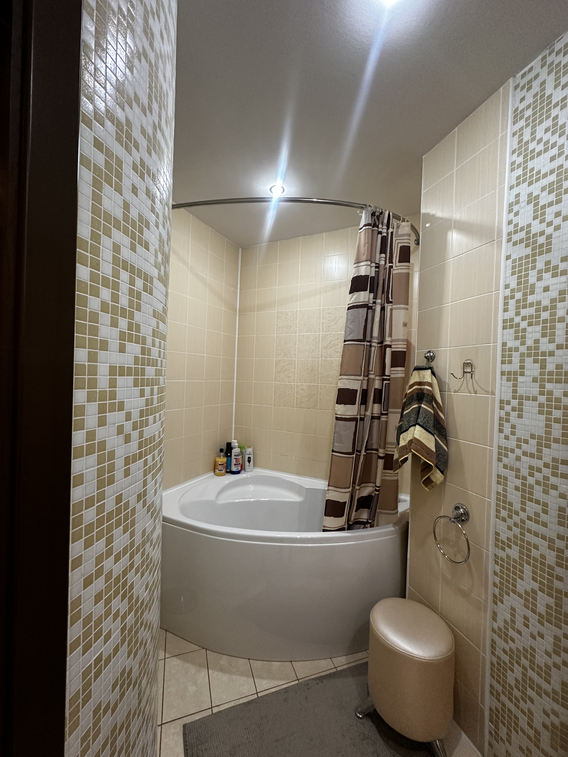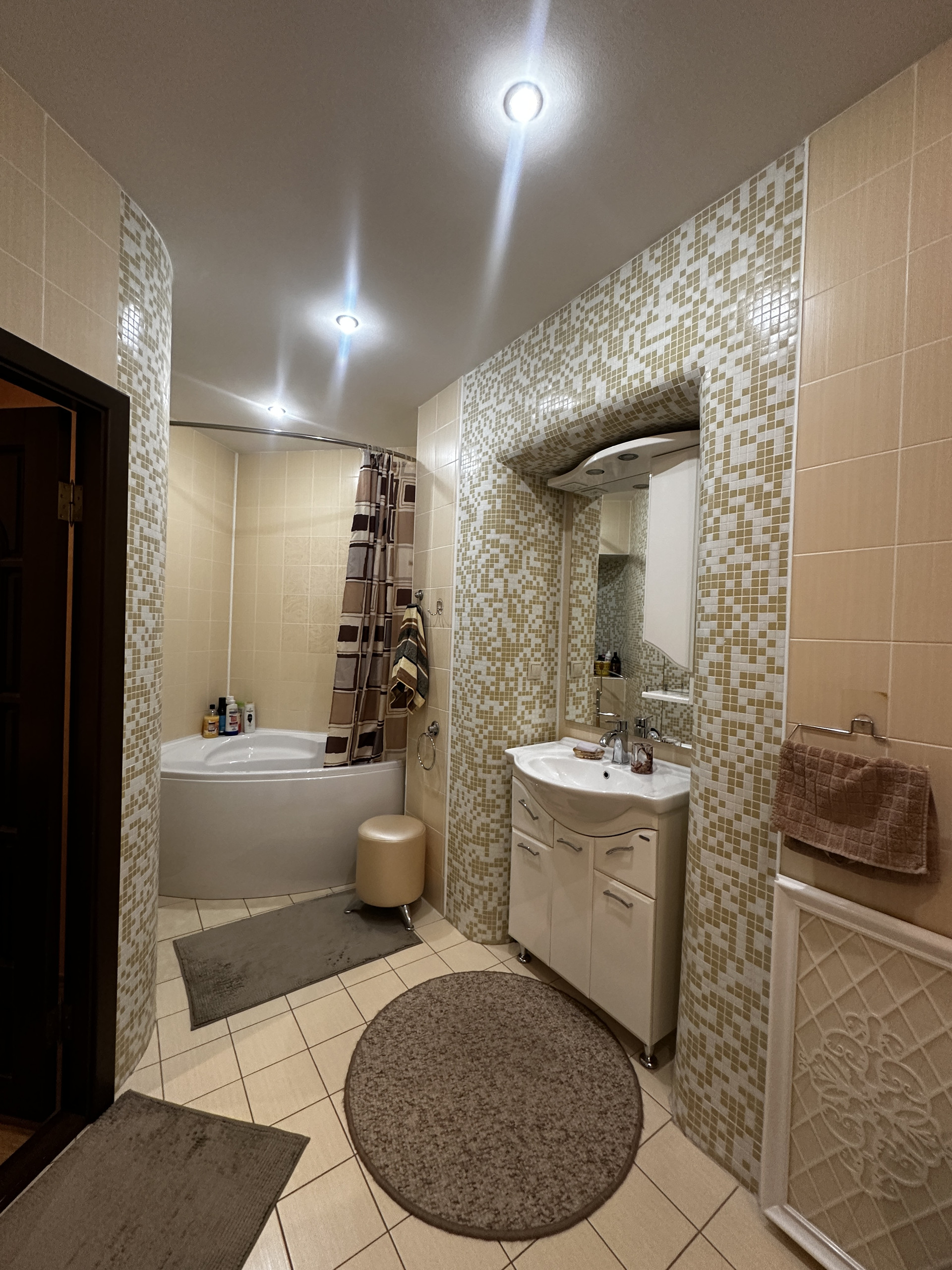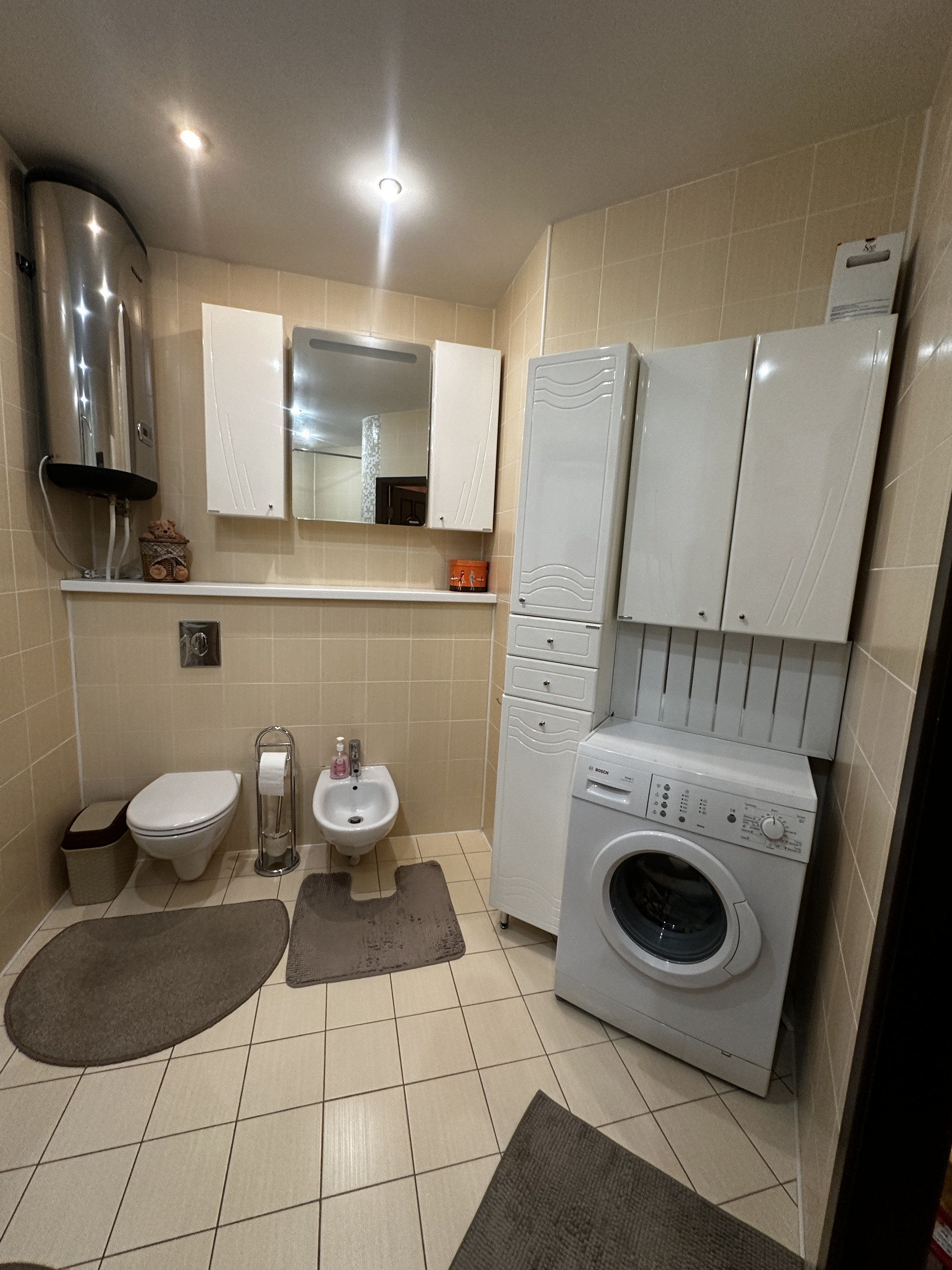 * просторный санузел 8,2 метра, кафель с подогревом.