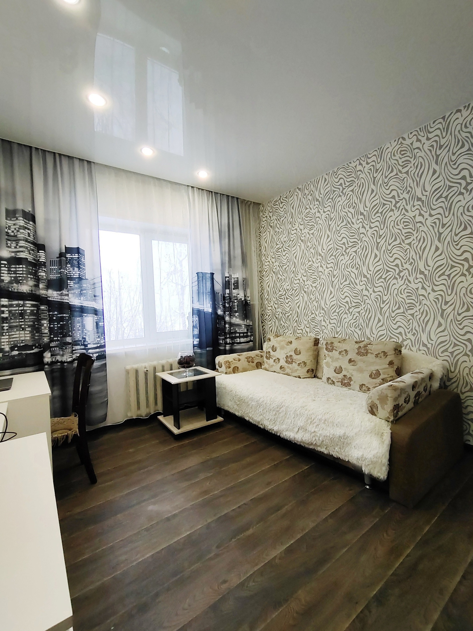 + натяжной потолок в 2-х комнатах, кухне и коридоре;