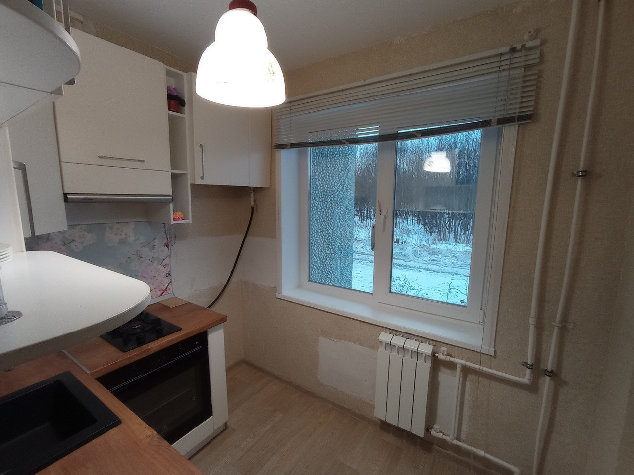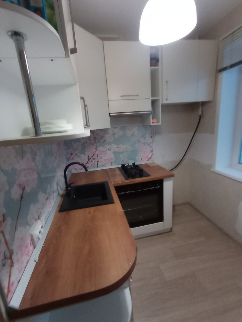 При продаже остаётся кухонный современный гарнитур, варочная газовая панель, кресло-кровать, вместительный шкаф-купе, компьютерный стол.