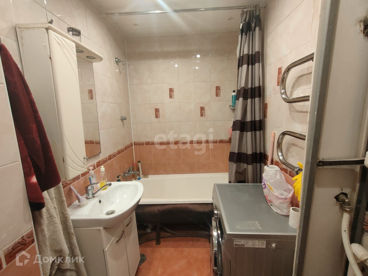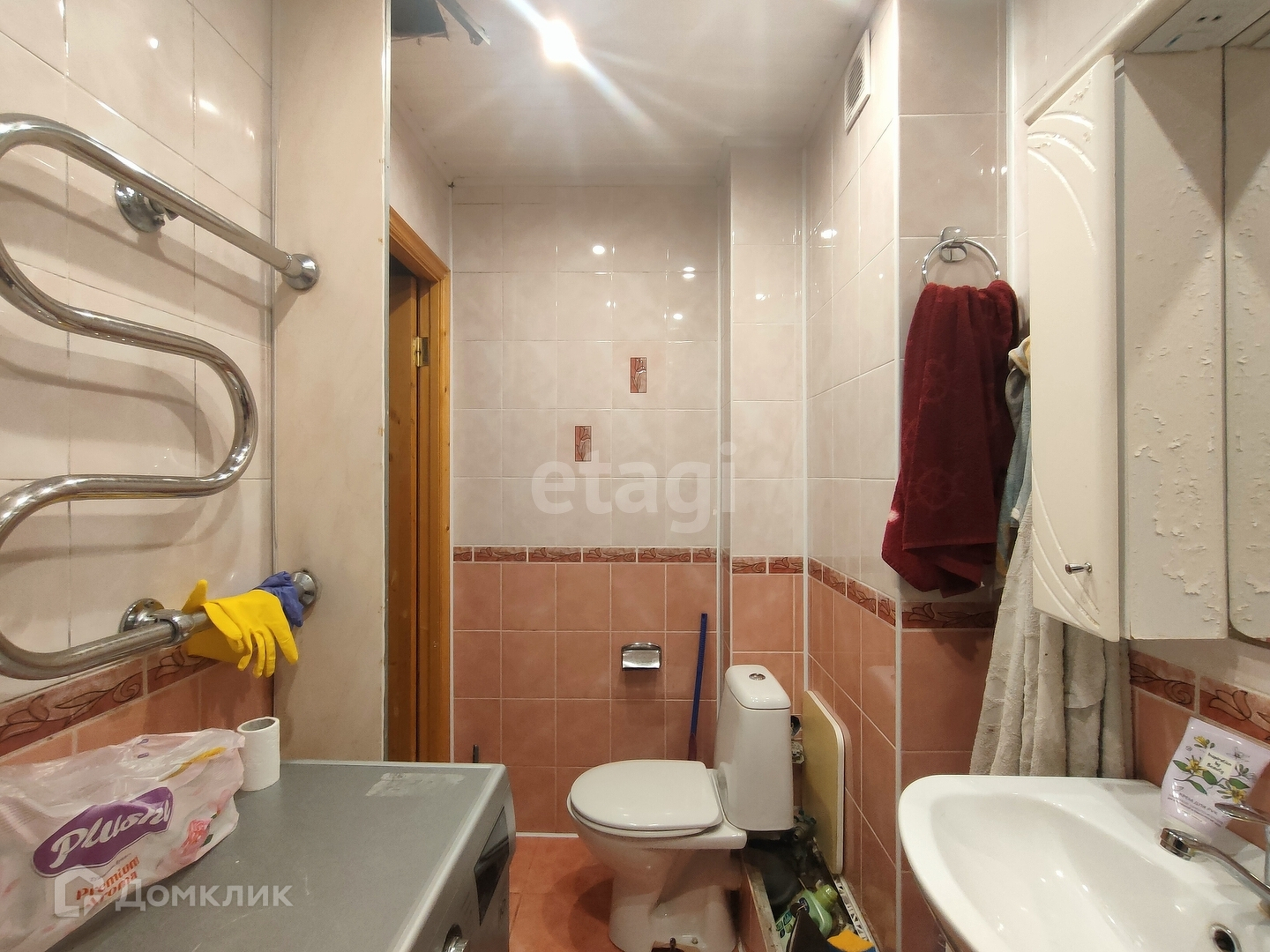 В сан.узеле на полу и стенах плитка, пол с подогревом.