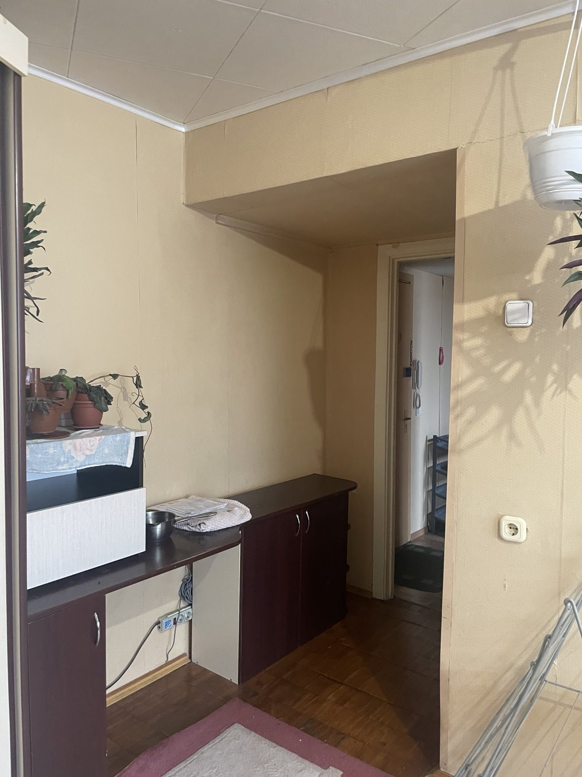 На прямой продаже двухкомнатная с раздельными комнатами квартира, расположенная на 3 этаже жилого дома, материал стен - панель. Без балкона. Комнаты жилыми площадями - гостиная 16.3 кв.м, спальня 10.1 кв.м. Санузел раздельный, имеется вместительная кладовая для хранения. Кухня площадью 6.2 кв.м. Солнечная сторона, не заселена. Большая давность владения. Требует ремонта.