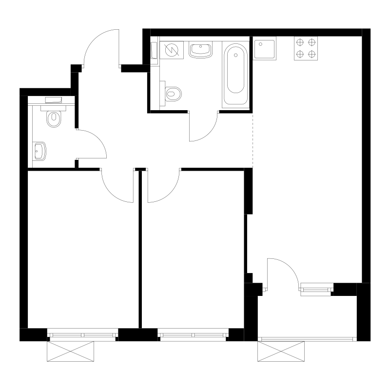 НЕ угловая, в середине дома. Удобная планировка, вид из окон во двор, светлая, теплая, все продумано для будущих жильцов. Площадь квартиры 58 м², большая кухня-гостиная 17,4 м² с выходом на лоджию (застеклена), комнаты 10,2 м² и 11,6 м², удобный коридор с местом под шкаф 7,9 м², 2 с/узла 3,9 м² и 1,7 м².