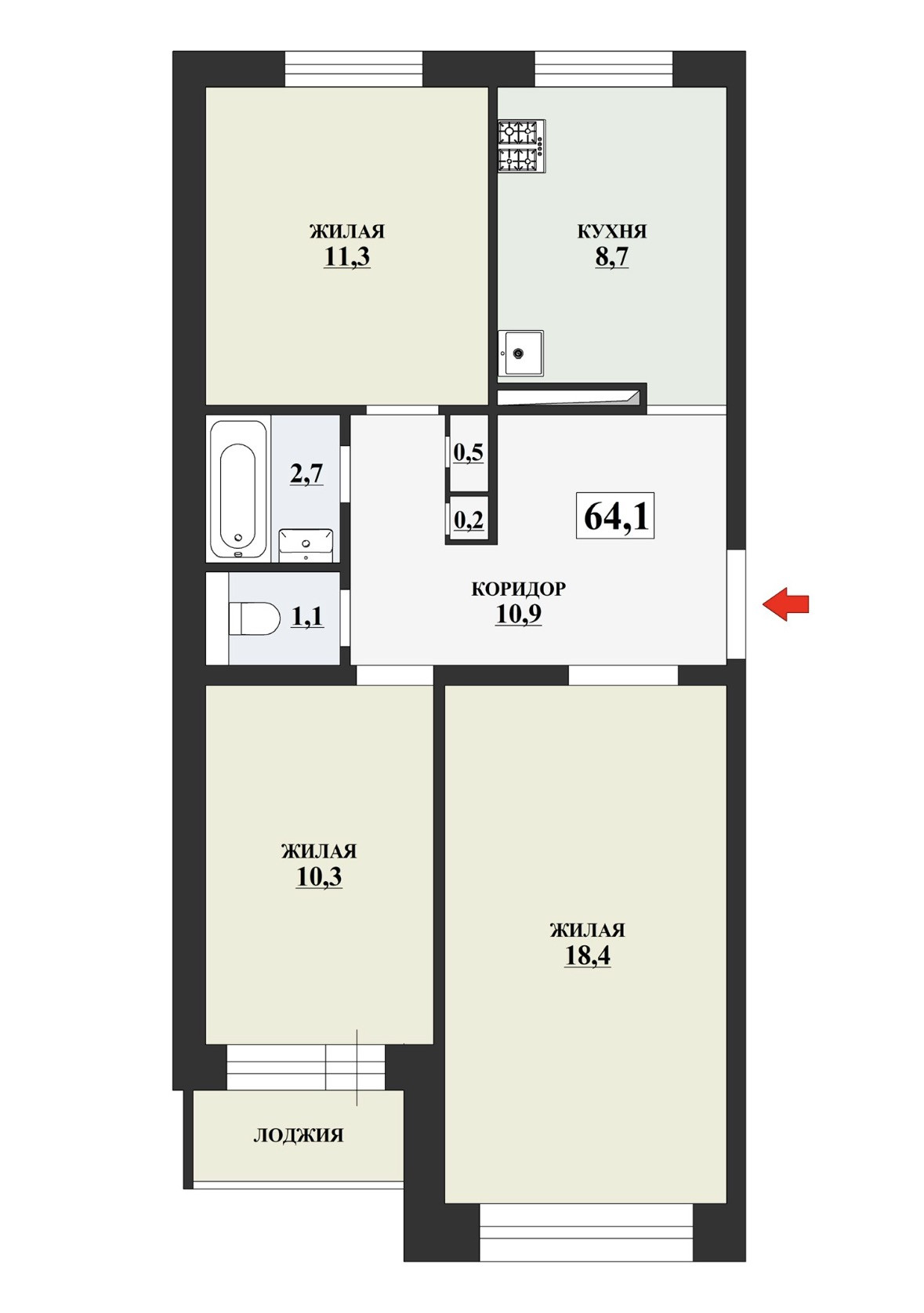 Общая площадь 64.1 м2
