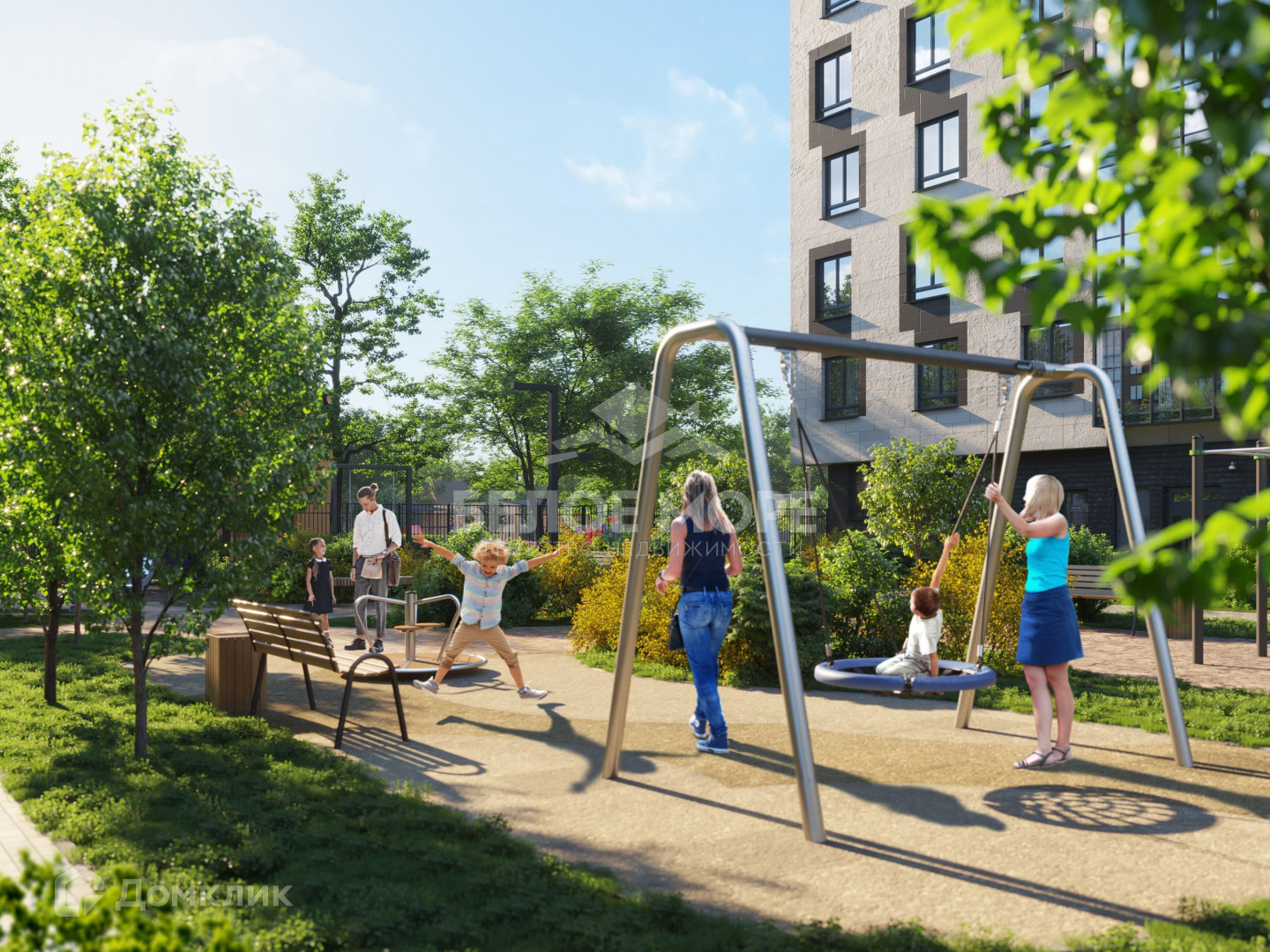 + Территория комплекса позволяет наслаждаться широким спектром активностей на открытом воздухе. Здесь Вы найдете пространства для всех возрастов с учетом их образа жизни. Во дворе установлена детская площадка и спортивная зона отдыха.