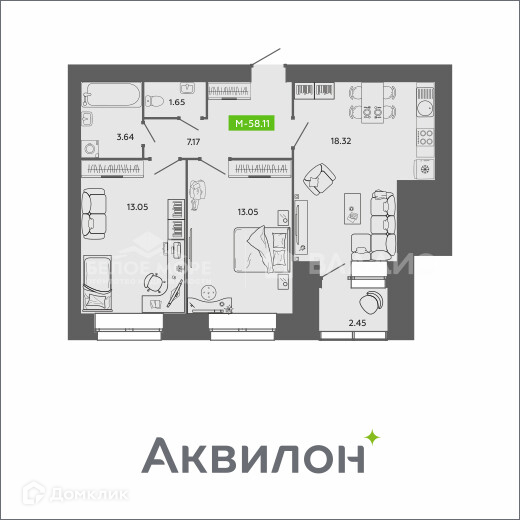 Общая площадь 58.11 м2