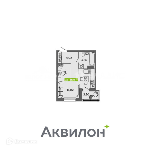 Общая площадь 25.85 м2