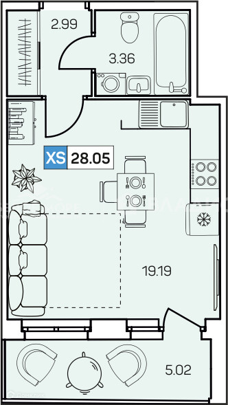 Общая площадь 28.1 м2