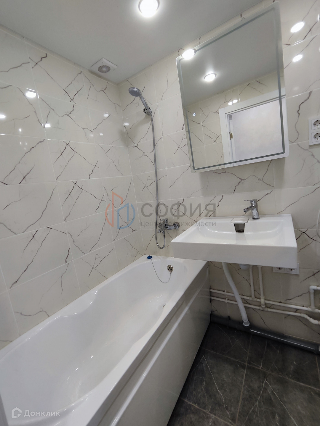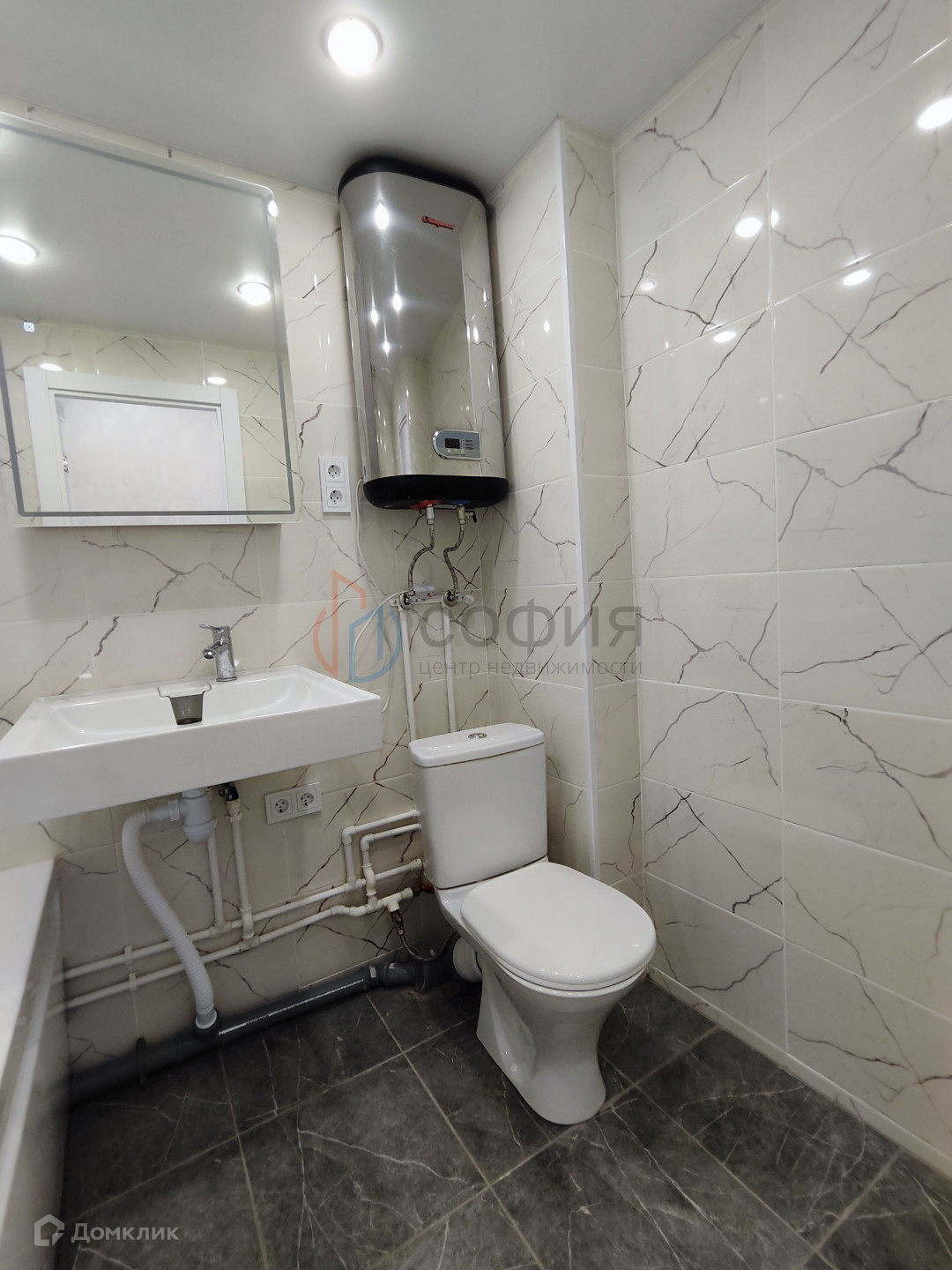 - Санузел в кафеле, новая сантехника.