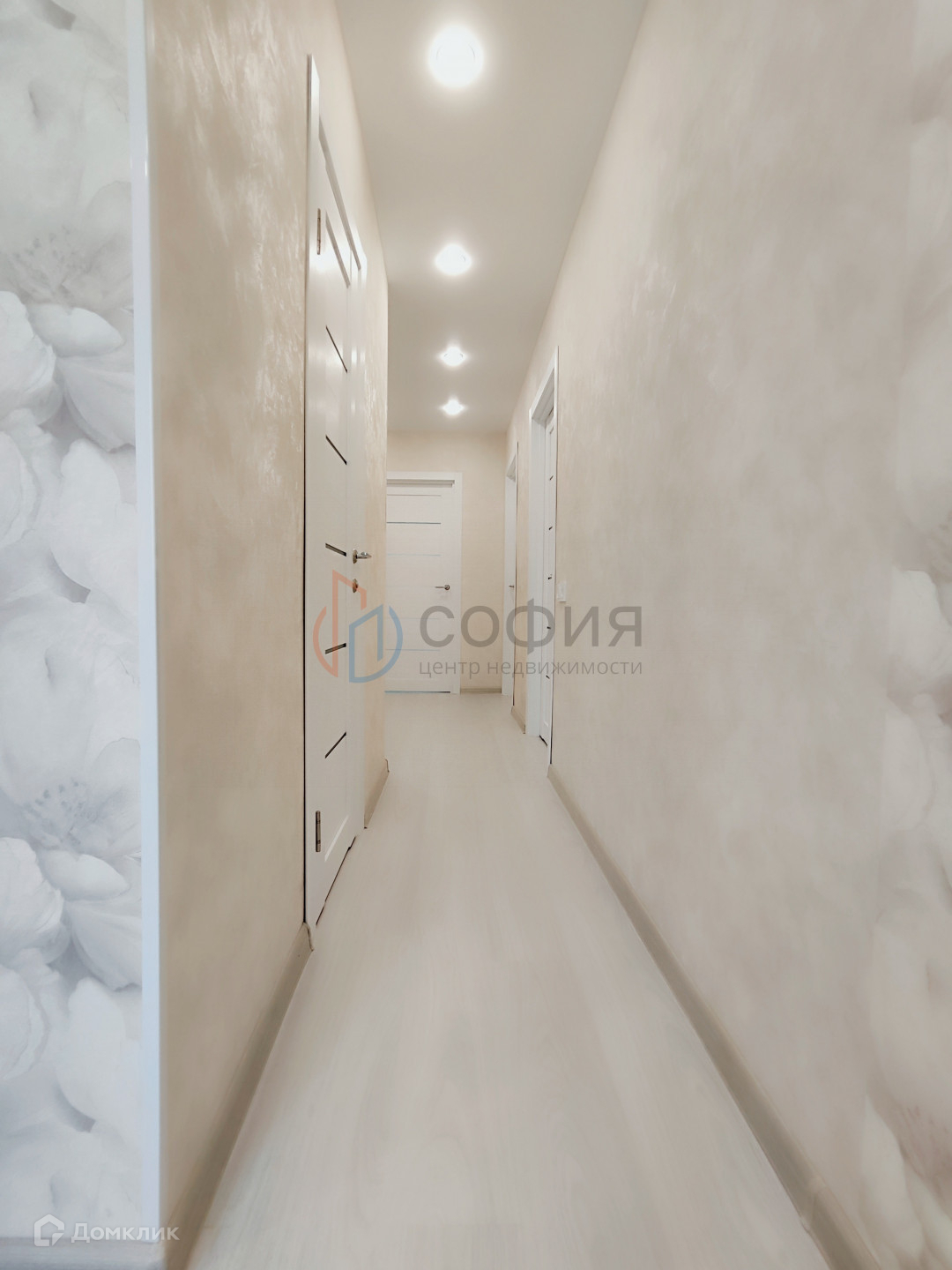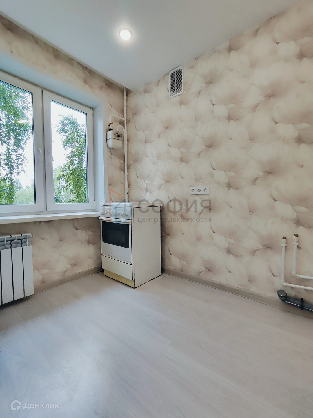 - Половое покрытие - ламинат в один цвет, потолки - натяжные, окна - стеклопакеты, стены выровнены, обои в светлых, приятных глазу тонах.