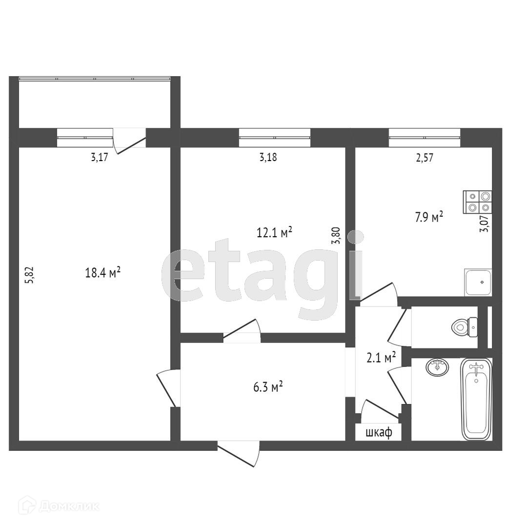 Продается двухкомнатная квартира на 4 этаже, 9-этажного дома. Грамотная планировка, солнце светит в вечернее время. Комнаты изолированные площадю 18,4 м2 и 12,1 м2, просторная кухня 7,9 м2. В большой комнате застеклен балкон, из квартиры открывается прекрасный вид из окна. Санузел раздельный, в ванной комнате кафельная плитка. В квартире сделан косметический ремонт.