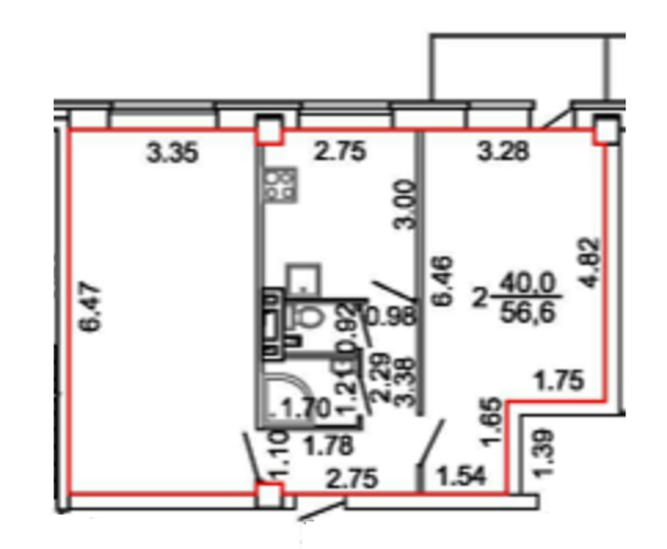 Жилая площадь 40 м2