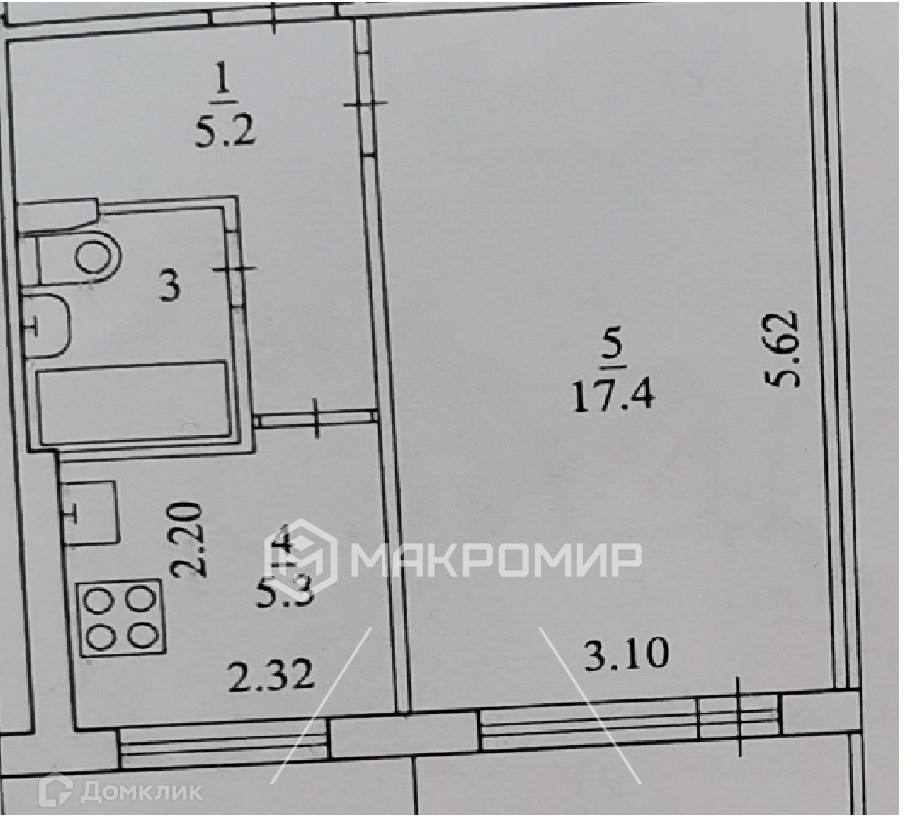 Общая площадь квартиры 30,6 кв.м, жилая 17,4 (комната). Кухня 5,3 кв.м. Квартира расположена на третьем этаже в самой середине дома – не крайние этажи, не торцевая, не угловая. Всегда тепло.
