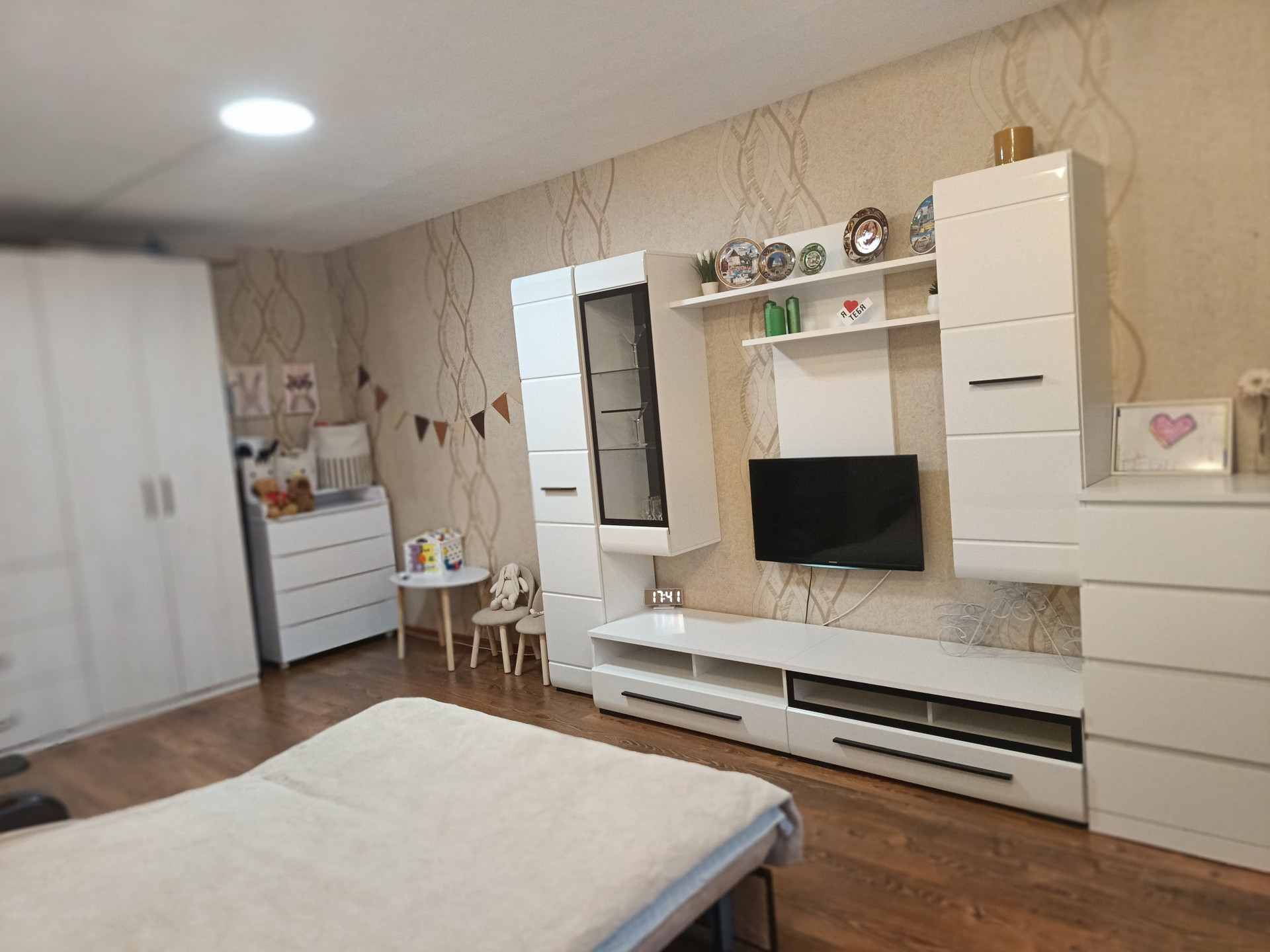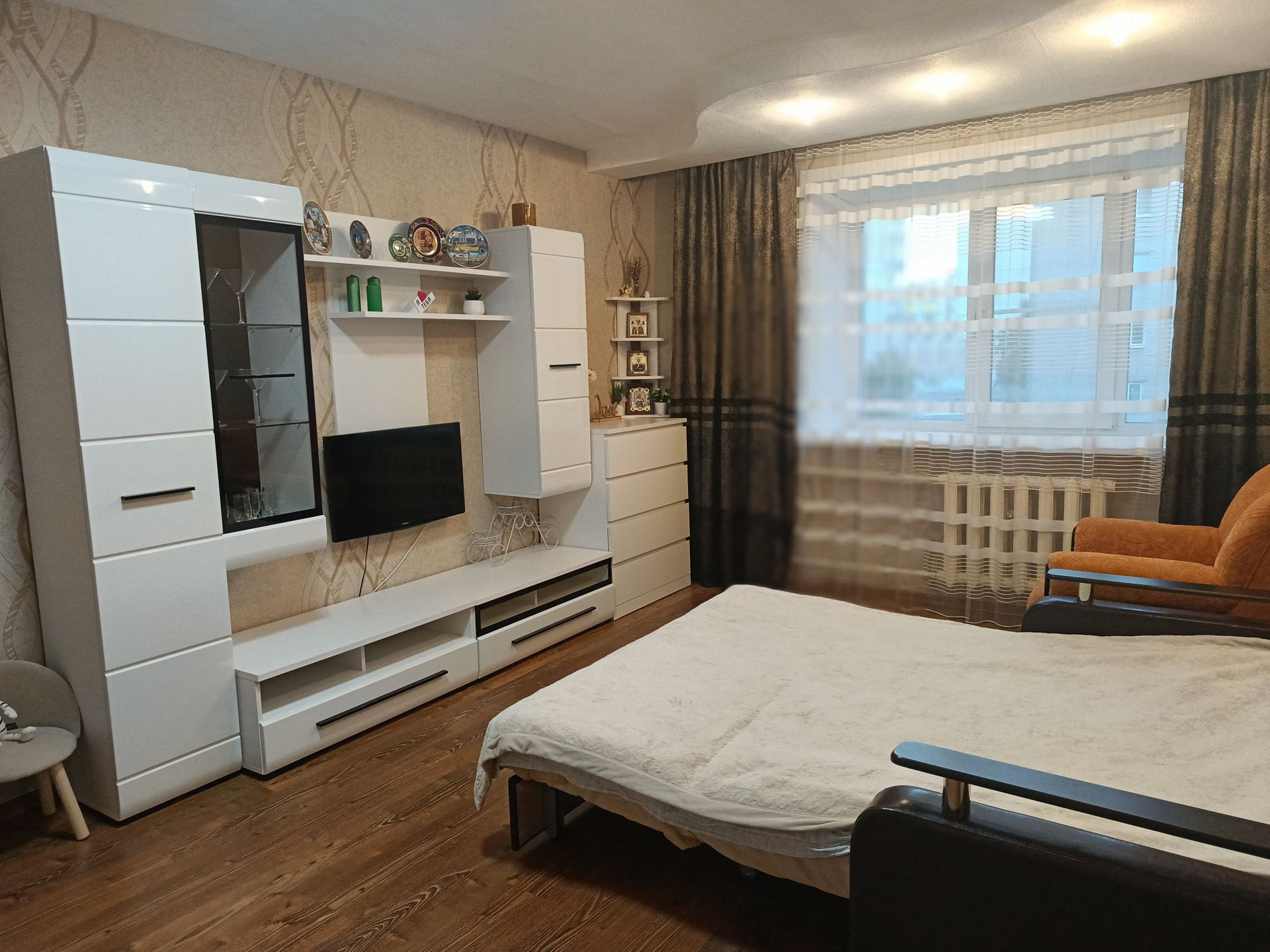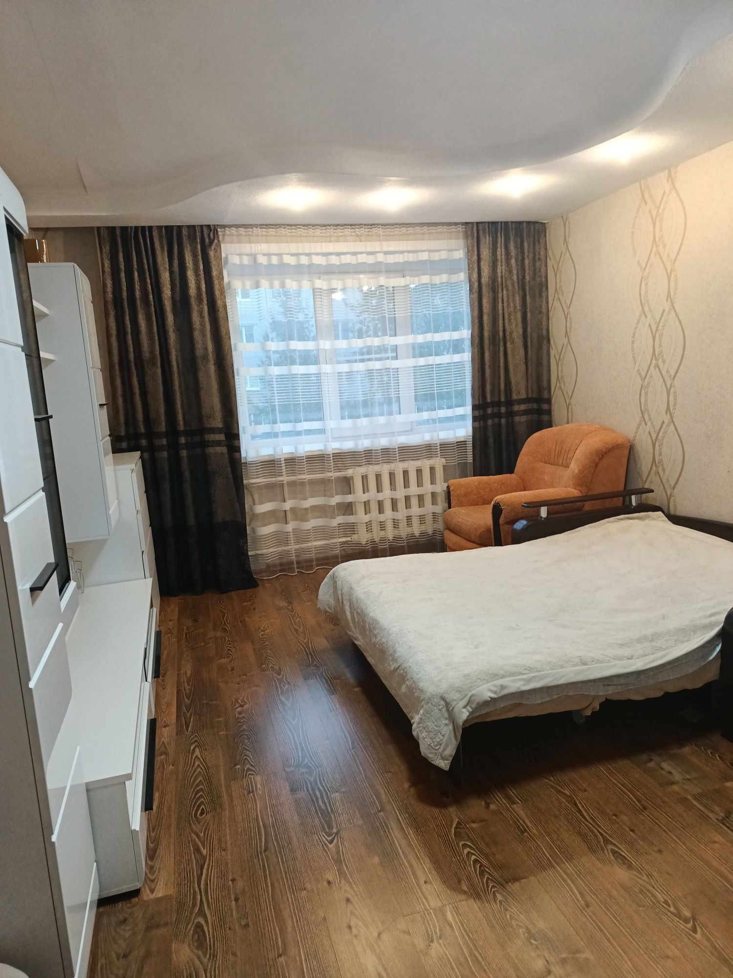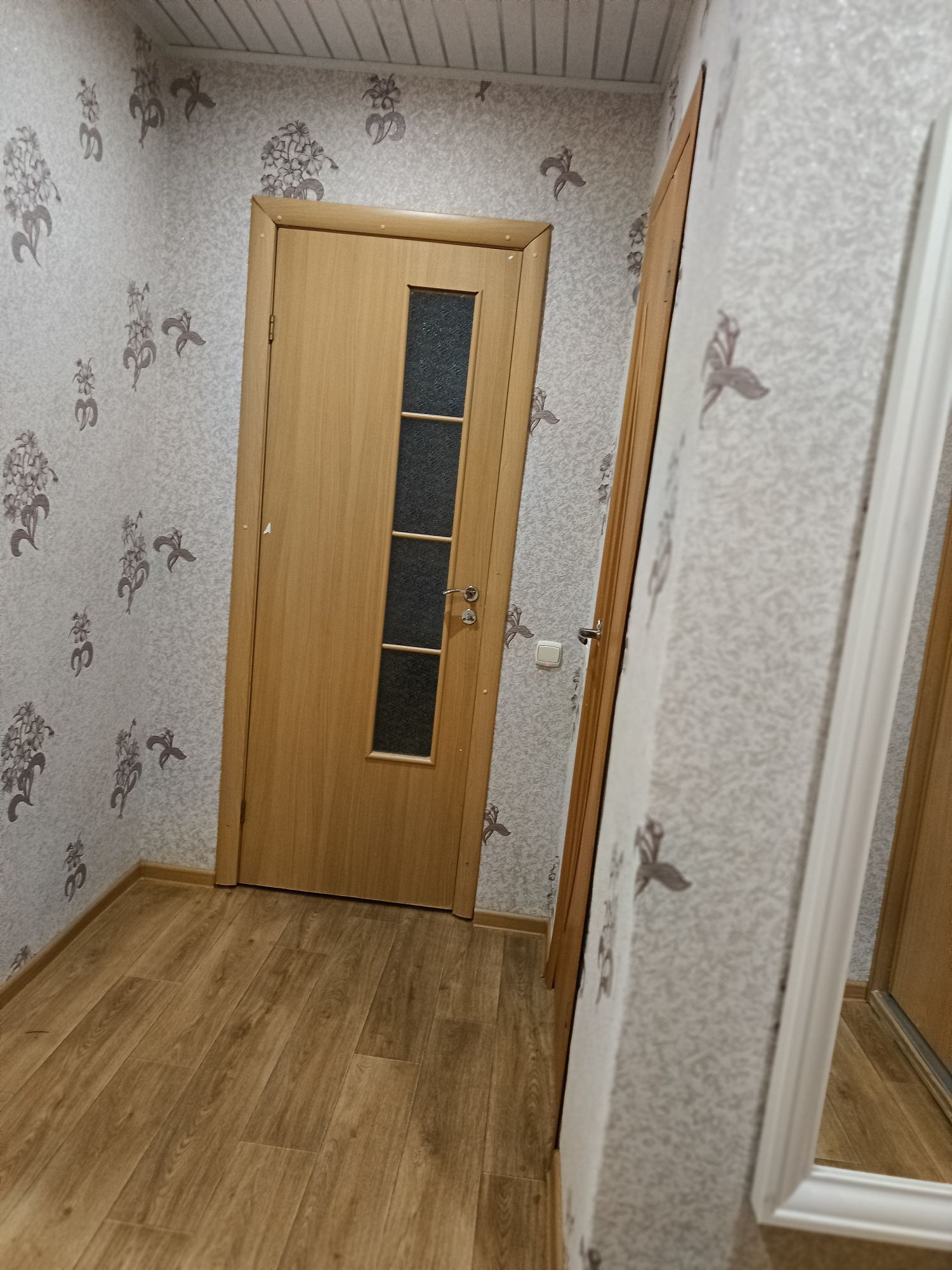 Дом кирпичный,комфортный 3 этаж,в квартире установлены стеклопакеты,натяжные потолки,ламинат в комнате,кафель(+тёплый пол ) на кухне.Санузел совмещённый ,в кафеле,поменяны трубы .В доме электроплиты.