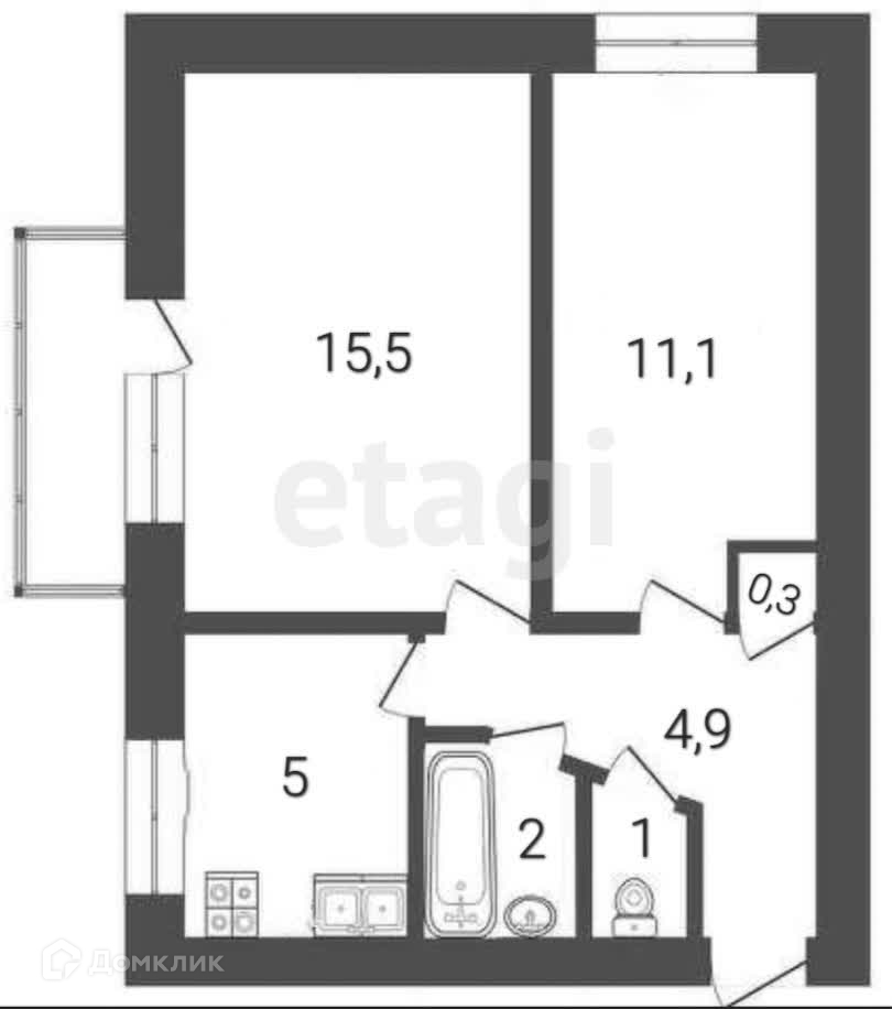 Общая площадь 39.8 м2