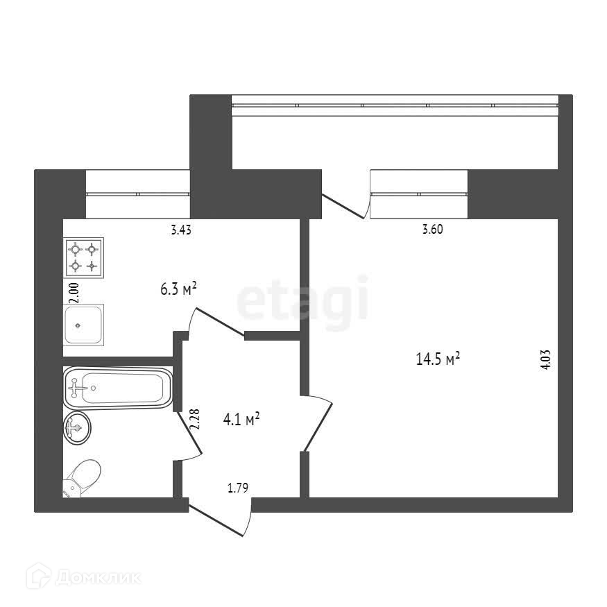 Общая площадь 28.1 м2