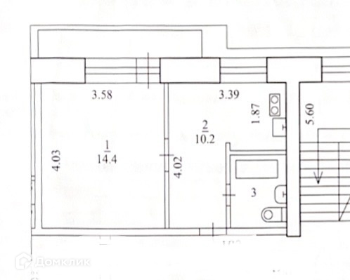 Жилая площадь 14.4 м2