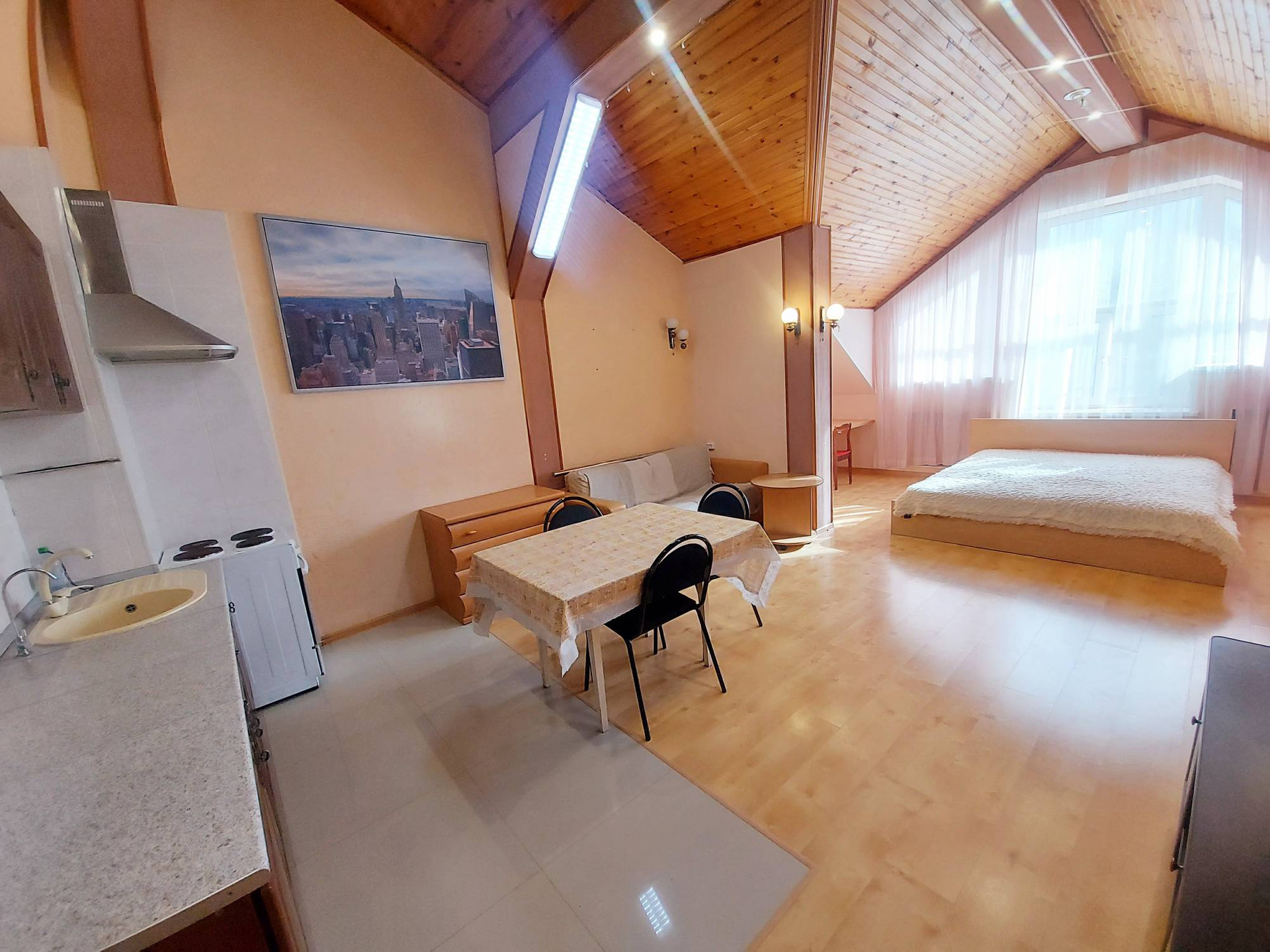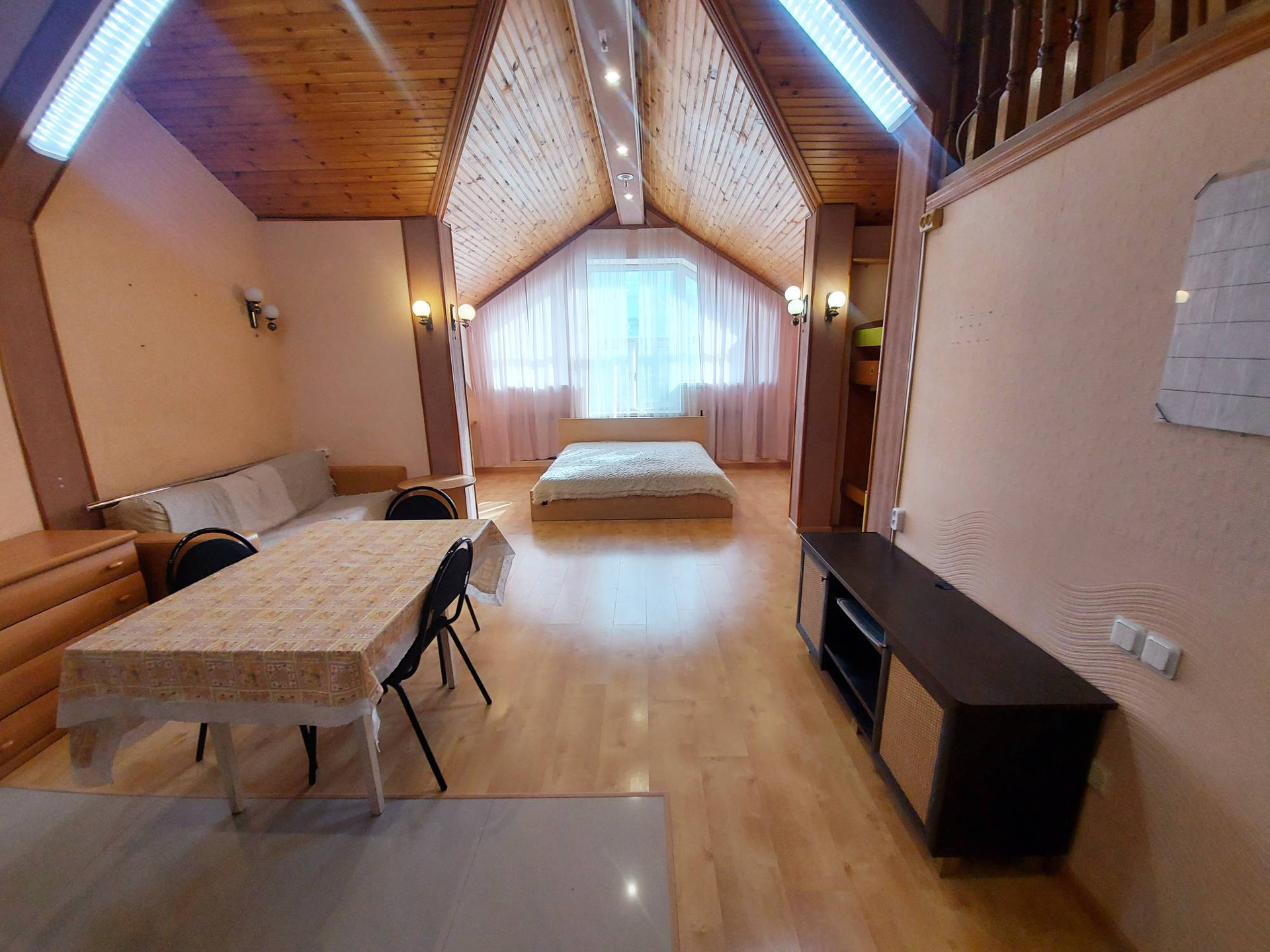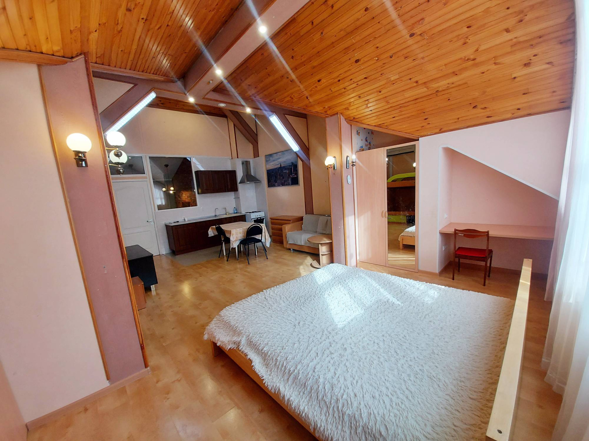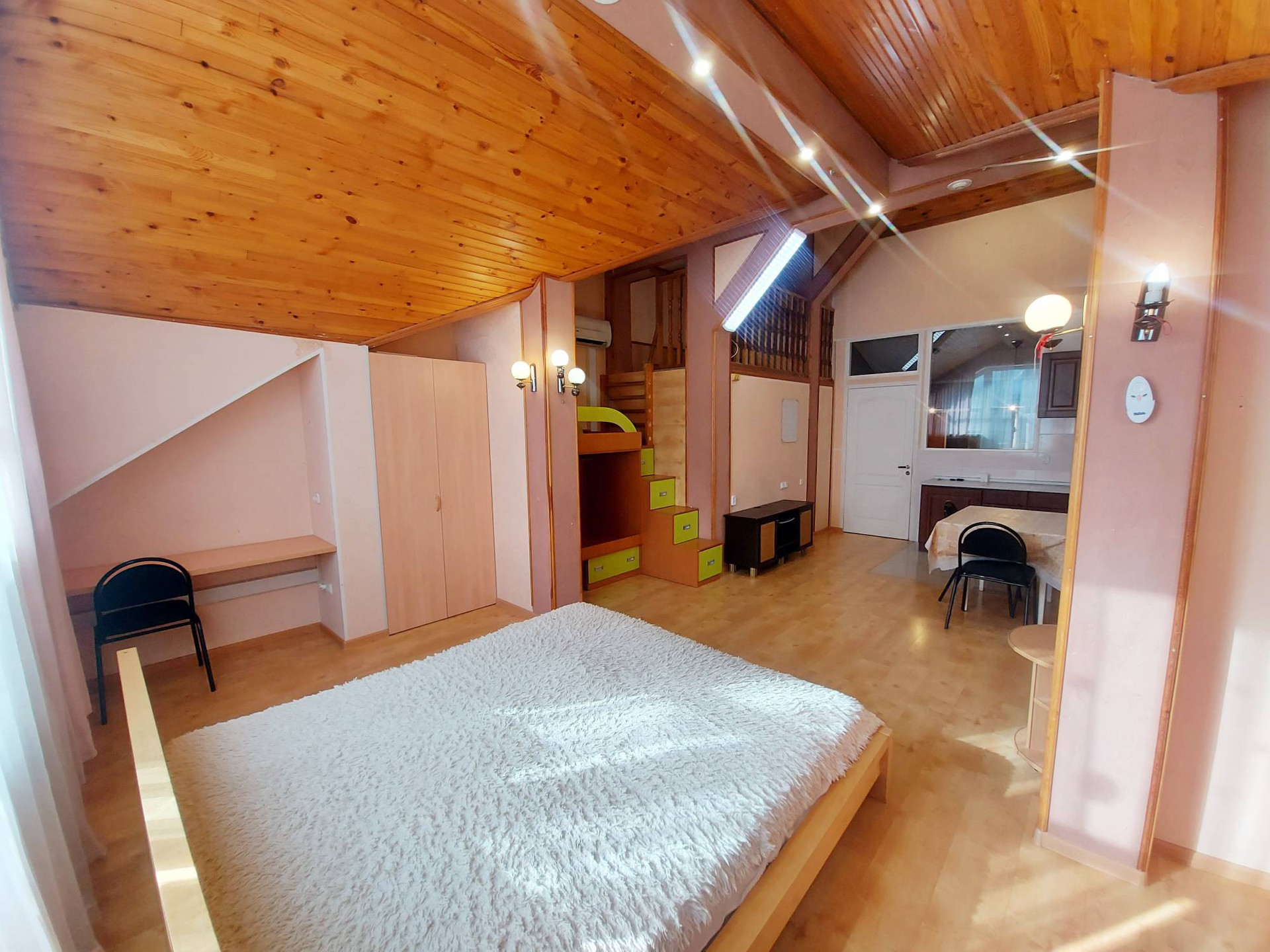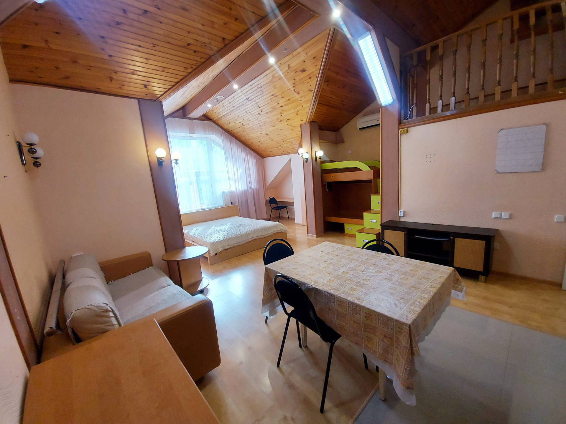 На данный момент в помещении оборудовано 8 отдельных студий со своими санузлами. На 2 этаже застекленная лоджия. Есть подсобные помещения. На 1 этаже гараж 36,3 м2. 2 входа на разные стороны. По Вашему желанию остается вся мебель и частично техника.