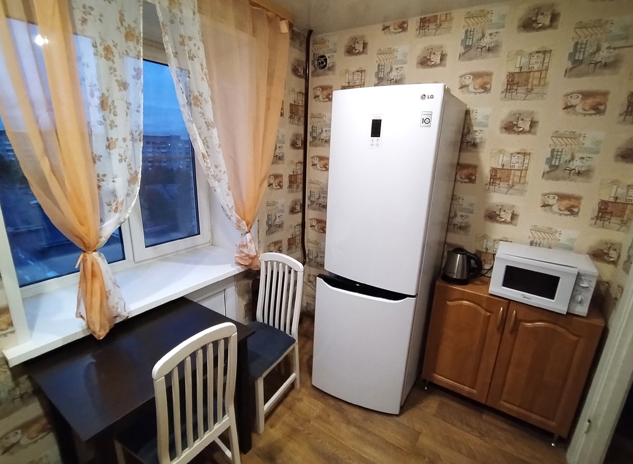 В квартире вся необходимая мебель и бытовая техника: газовая варочная панель, холодильник, стиральная машина, электрический чайник, микроволновка, водонагреватель, 2 телевизора.