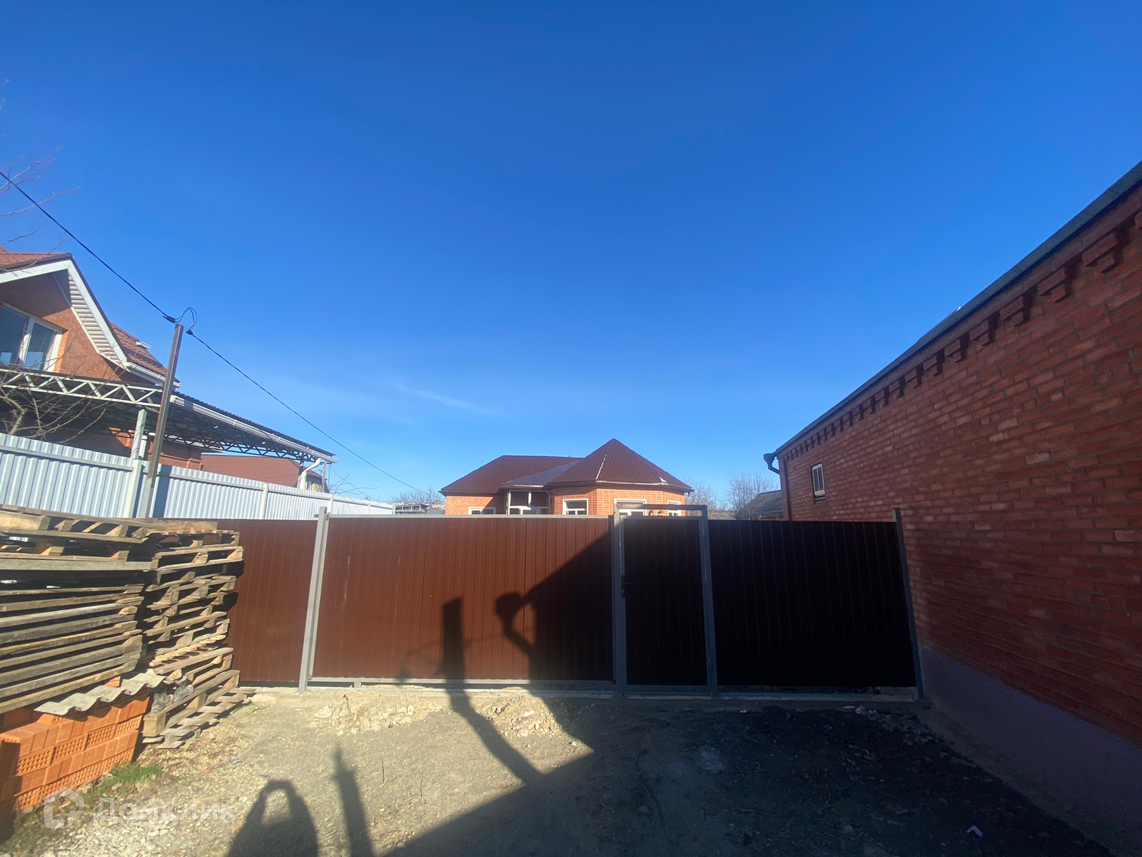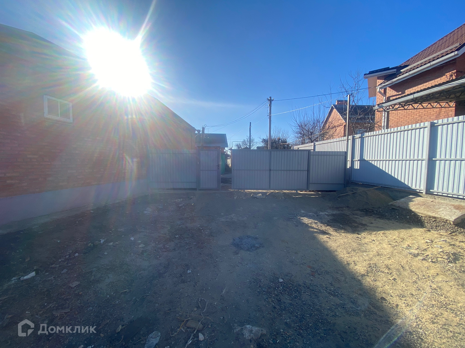 Земельный участок 4,5 сот., забор из металлопрофиля, откатные ворота, двор отсыпан гравием.