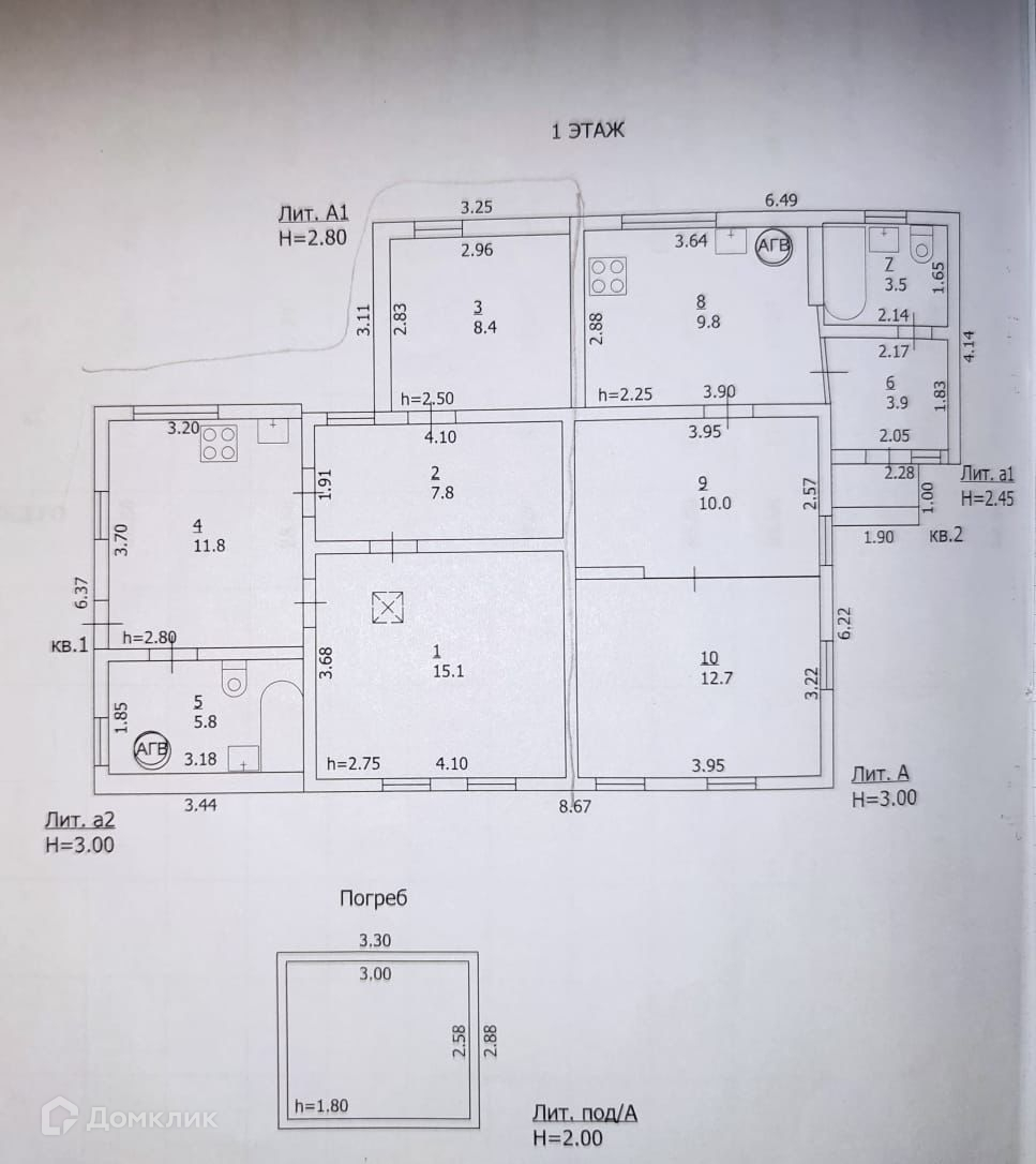 2-я половина дома состоит и кухни-прихожей (3.2*3.7м), санузла (3.2*1.8м) и 3х спален (4.1*3.7м, 4.1*2м, 2.8*3м). Под большой комнатой оборудован погреб (3*2.6м).