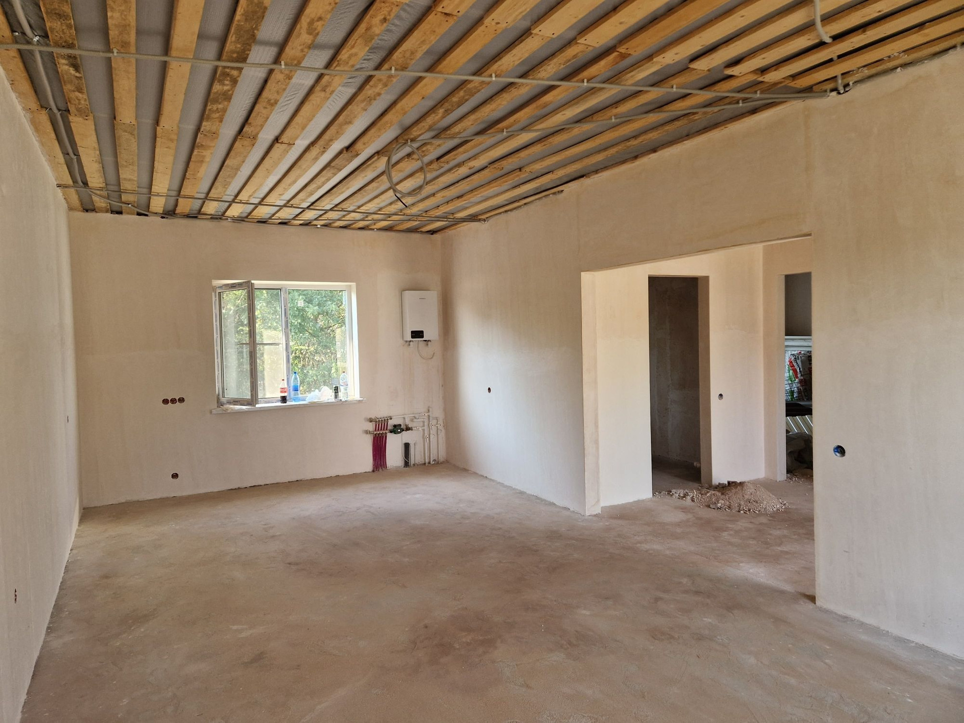 продаётся новый дом, удобной планировки: две спальни, кухня- зал,санузел и прихожая,  возможно сделать три спальни.В доме выполнена предчистовая Отделка,  установлен  настенный электрокотел, тёплый пол и батареи. Свет, вода, канализация, все заведено, эл- во 380вт., два септика. Прописка есть.Документы готовы,  межевание проведено Продаётся как в предчистовой, так и есть возможность купить его с полной внутренней отделкой.Цена договорная.