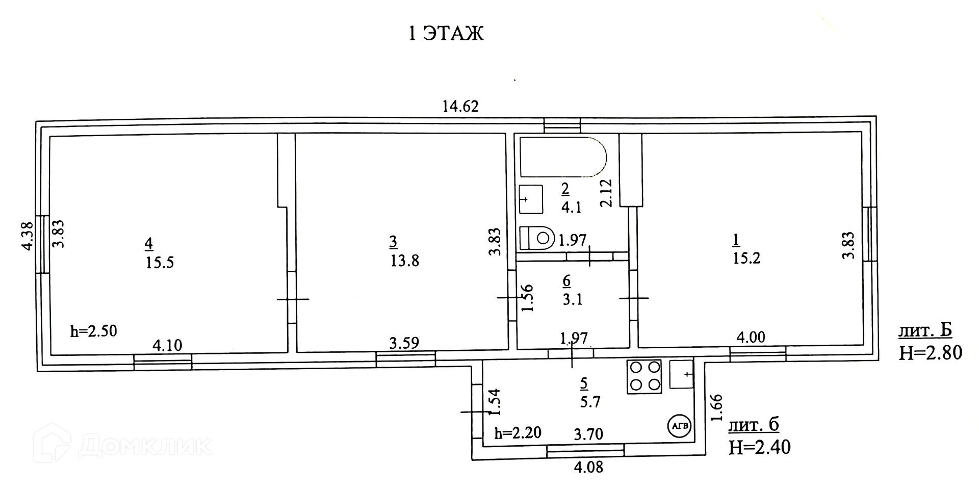 Дом включает в себя 3 комнаты (15.5 кв.м. ,15.2 и 13.8 кв.м.), кухню (5.7кв.м.), ванная комната совмещена с санузлом (4.1 кв.м.), прихожая (3.1 кв.м.).