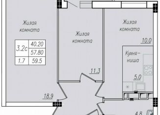 Общая площадь: 59.5 м2
