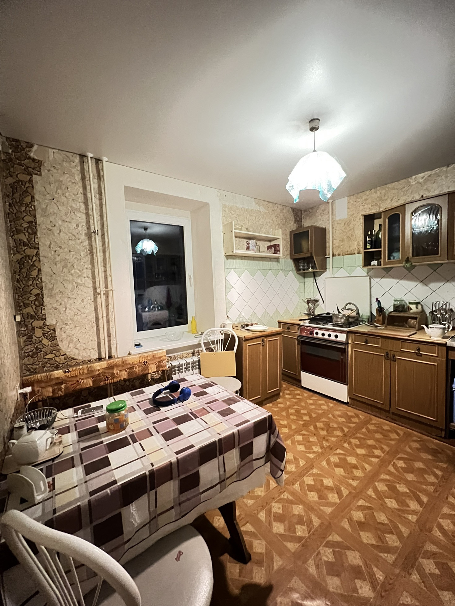 Коммуникации все заменены, на кухне и в зале натяжной потолок