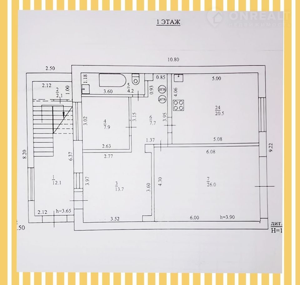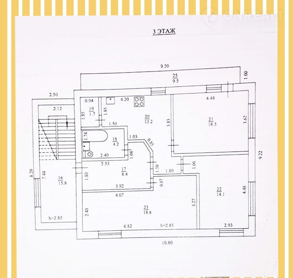 3 этаж: кухня, 3 комнаты, с/узел, прихожая;