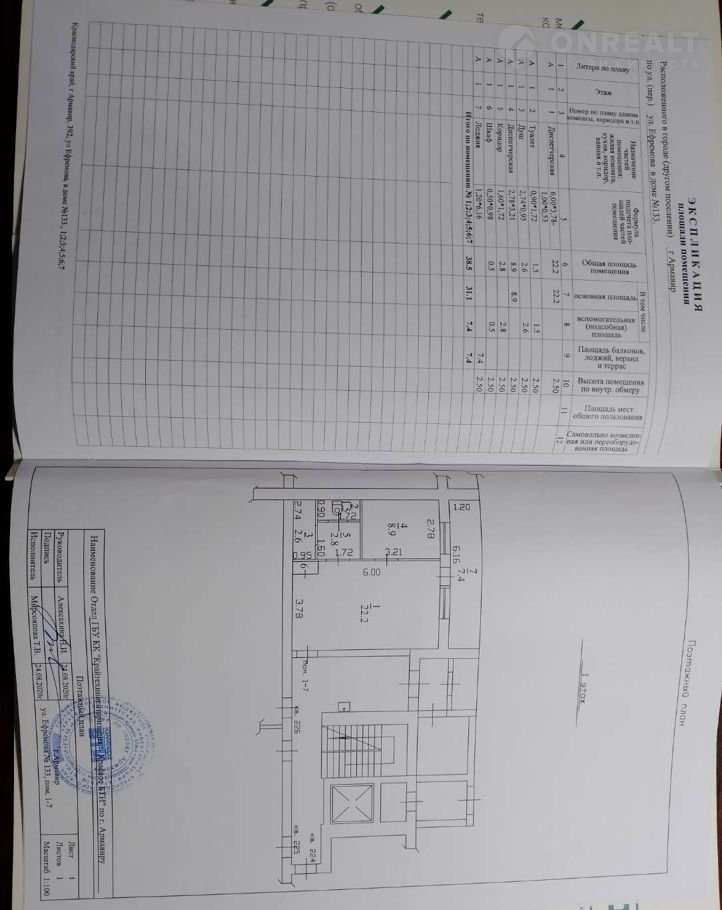 Общая площадь 38.5 м2
