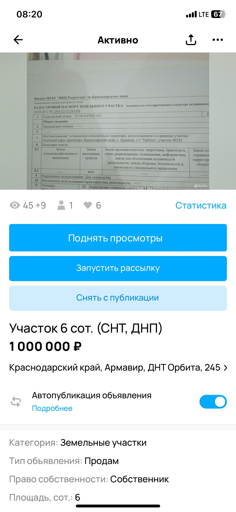 Участок под ИЖС, 6 сот. на продажу в Армавире, ДНТ Орбита, 227